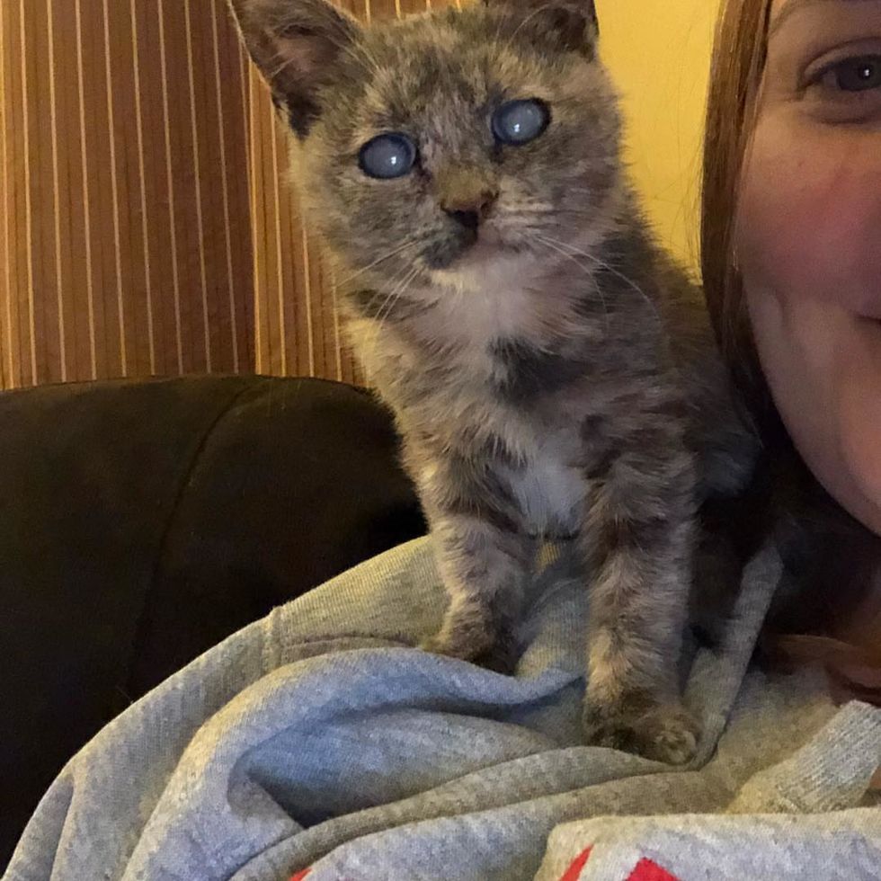 Tracy and Derek found little Storm on the animal hospital's Facebook page. "We instantly fell in love. We knew she would need special care because she appeared to be blind," Tracy told Love Meow. "We didn't care. We had to make her part of our family."
