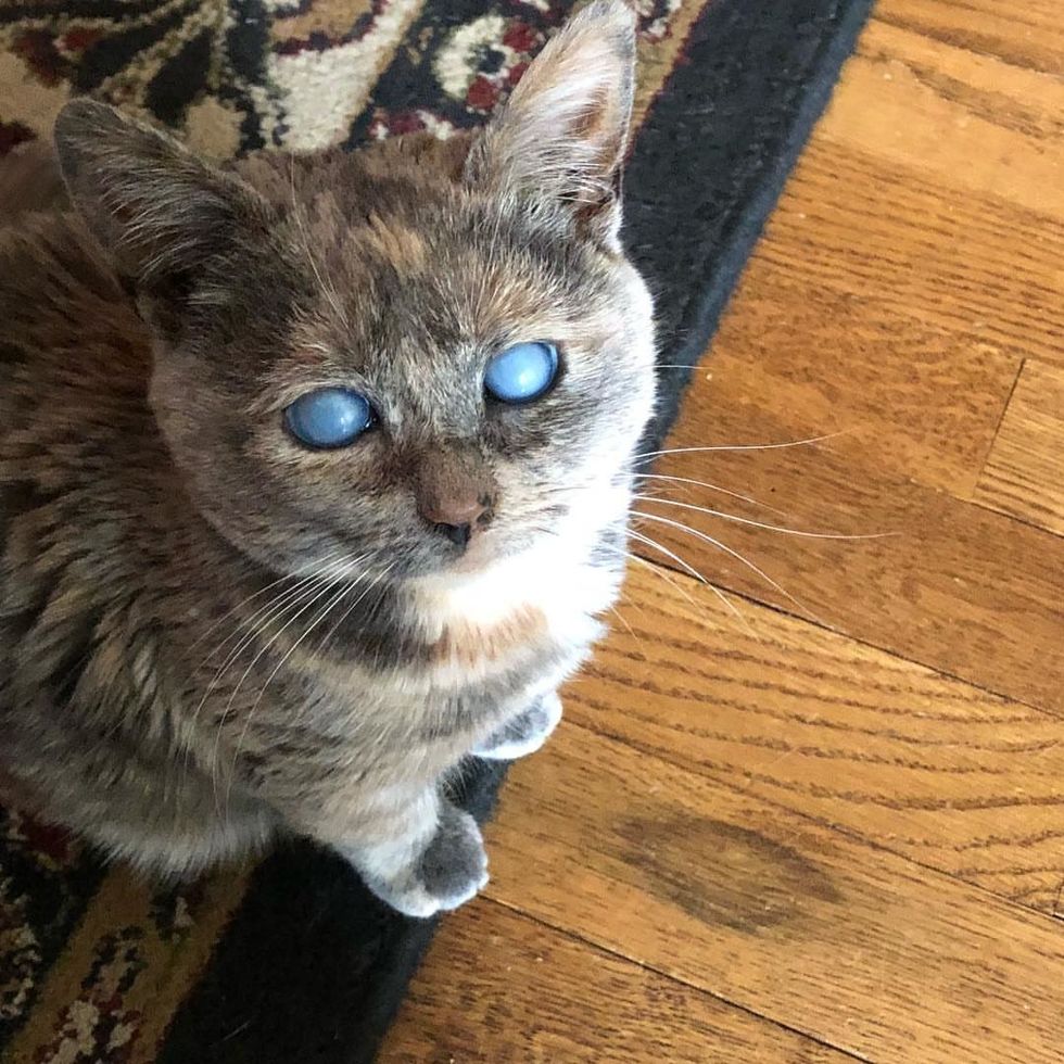 The couple took her to their vet and discovered that she was not blind. "She has Corneal Endothelial Degeneration. It is a bluish haze to the cornea that is caused by the loss of corneal cells. Hers are underdeveloped," Tracy added.