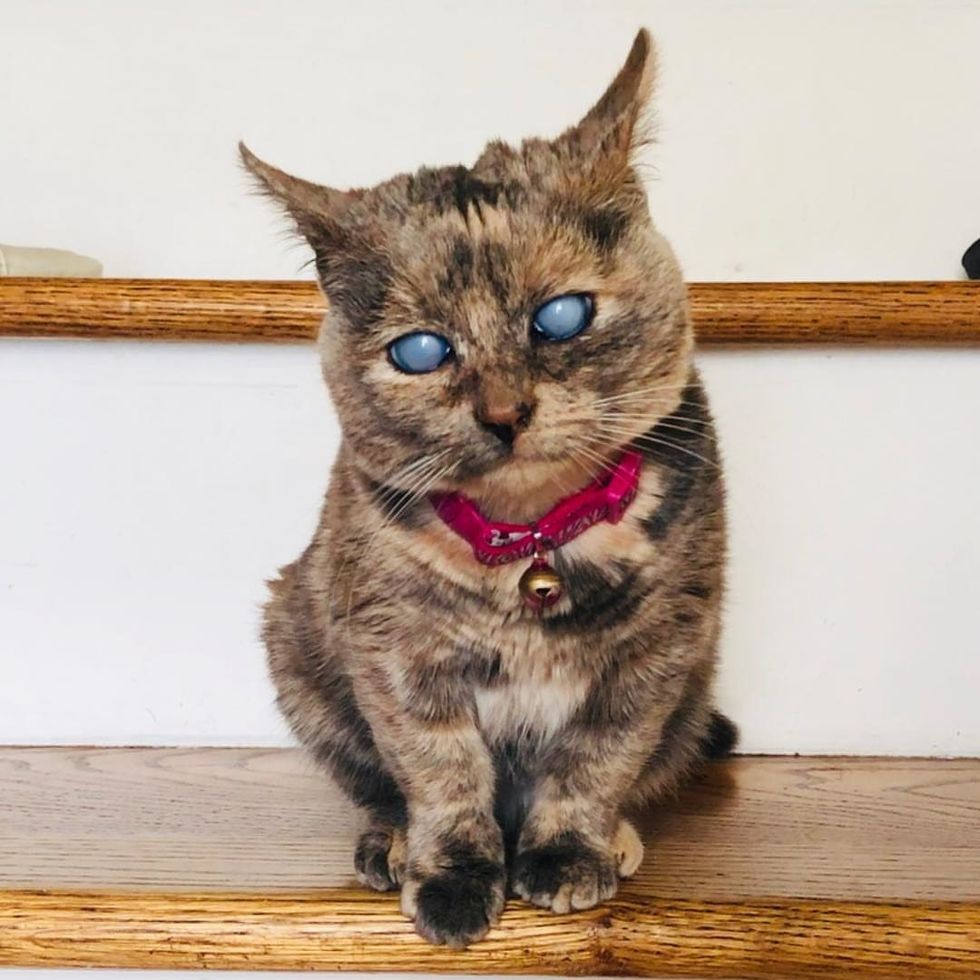 The tortie girl quickly adjusted to her new abode. She had no trouble getting around and would follow her human mom around the house, asking for attention.