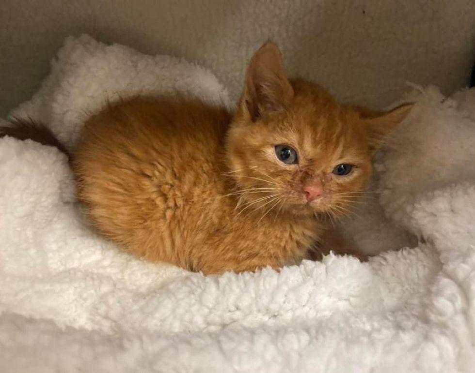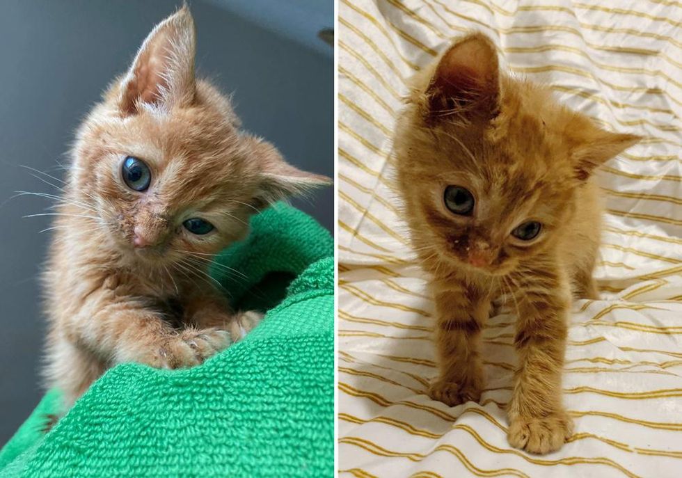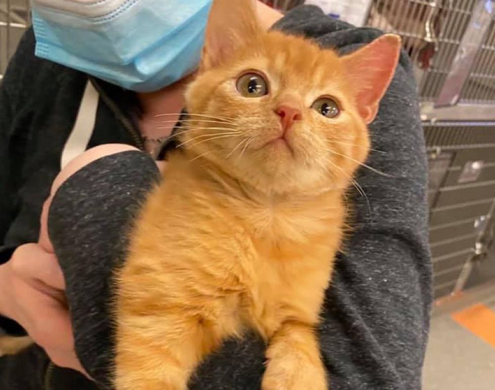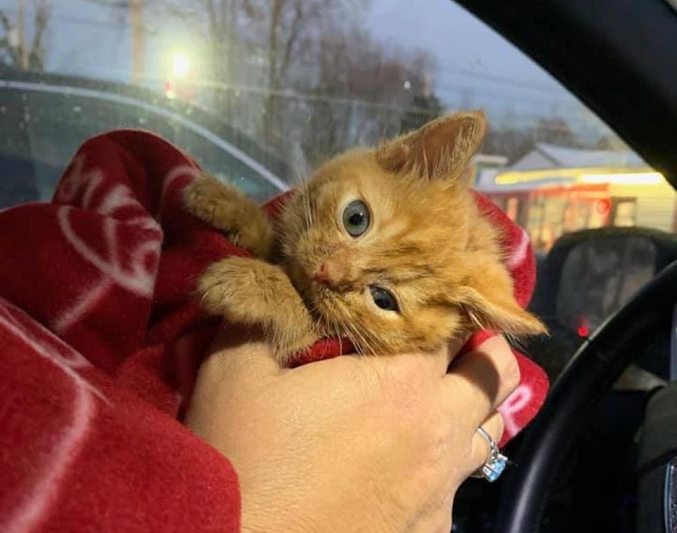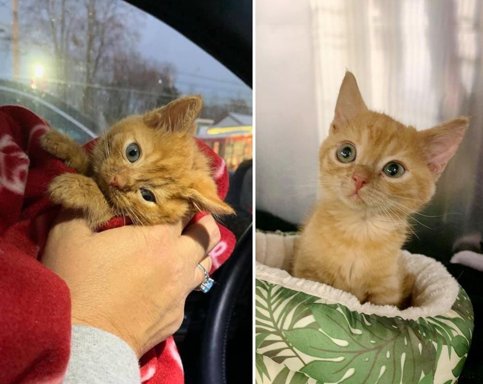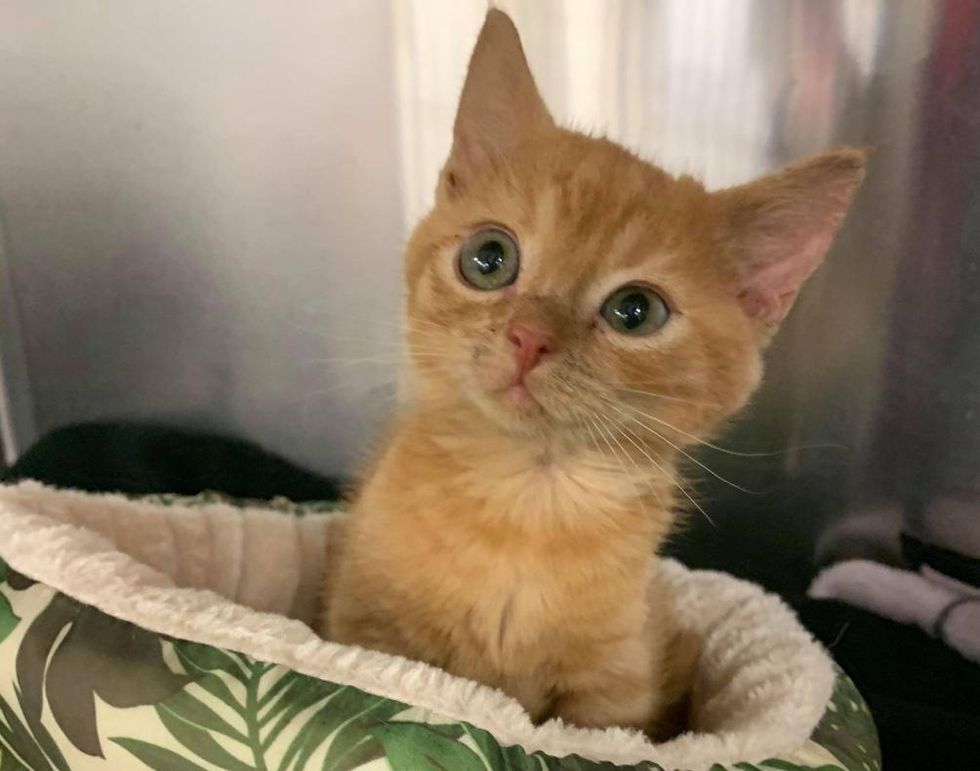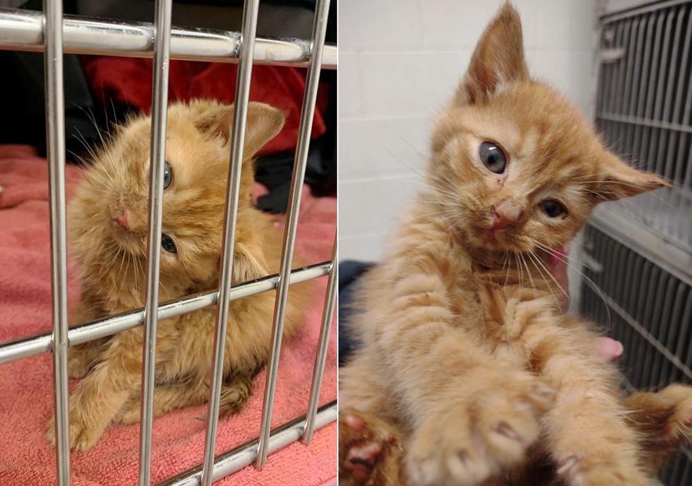 A tiny orange kitten was brought to a veterinary hospital in Massachusetts after he was found injured outside. The kitten came with a wound on his back and a head tilt as a result of an attack by another animal.