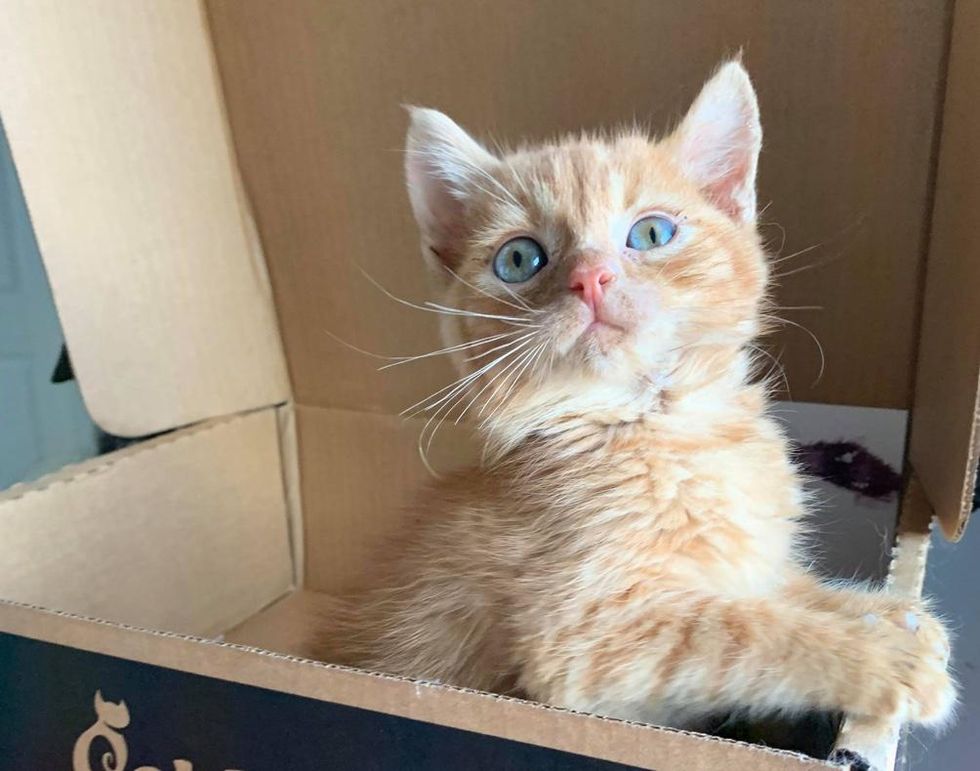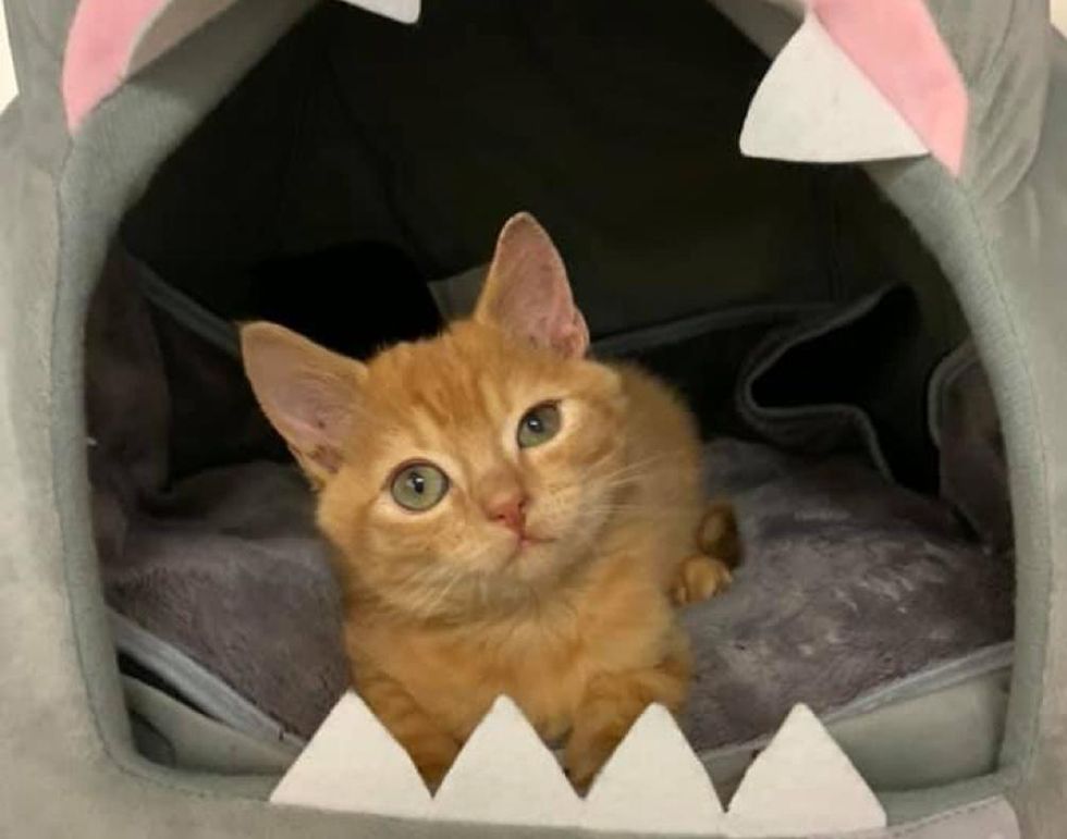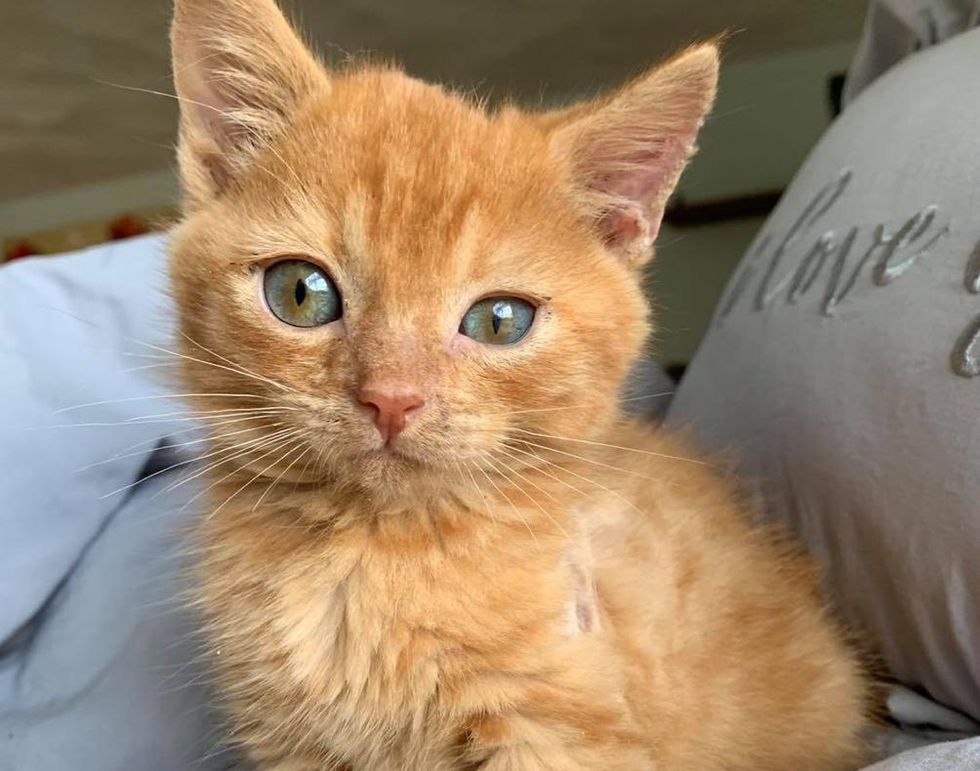 Despite the ordeal, the little tabby showed incredible spirit and just wanted to be snuggled. He was in need of specialized care to help him heal and thrive. Tara Kay, the founder of the Odd Cat Sanctuary, was asked if she could take him on. "We have a lot of experience with head trauma cases. He was four weeks old and weighed only half of a pound," Tara told Love Meow.