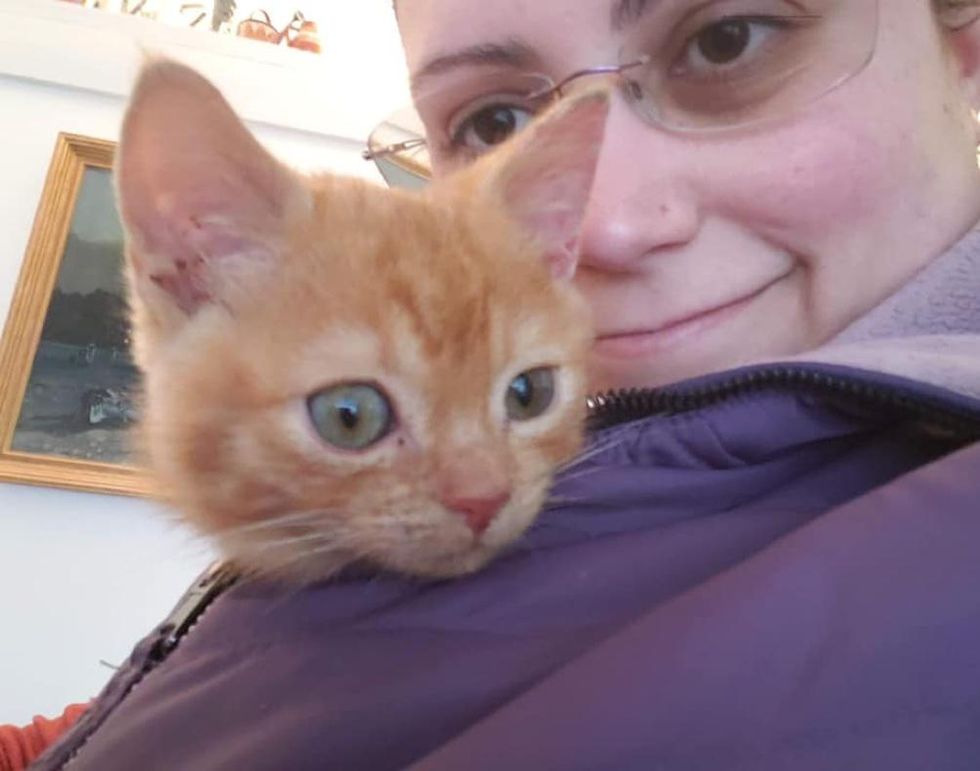 Adina, a veterinarian, came to meet the sweet tabby and was instantly smitten. The kitten snuggled right up to her and started rumbling with his adorable purrs.