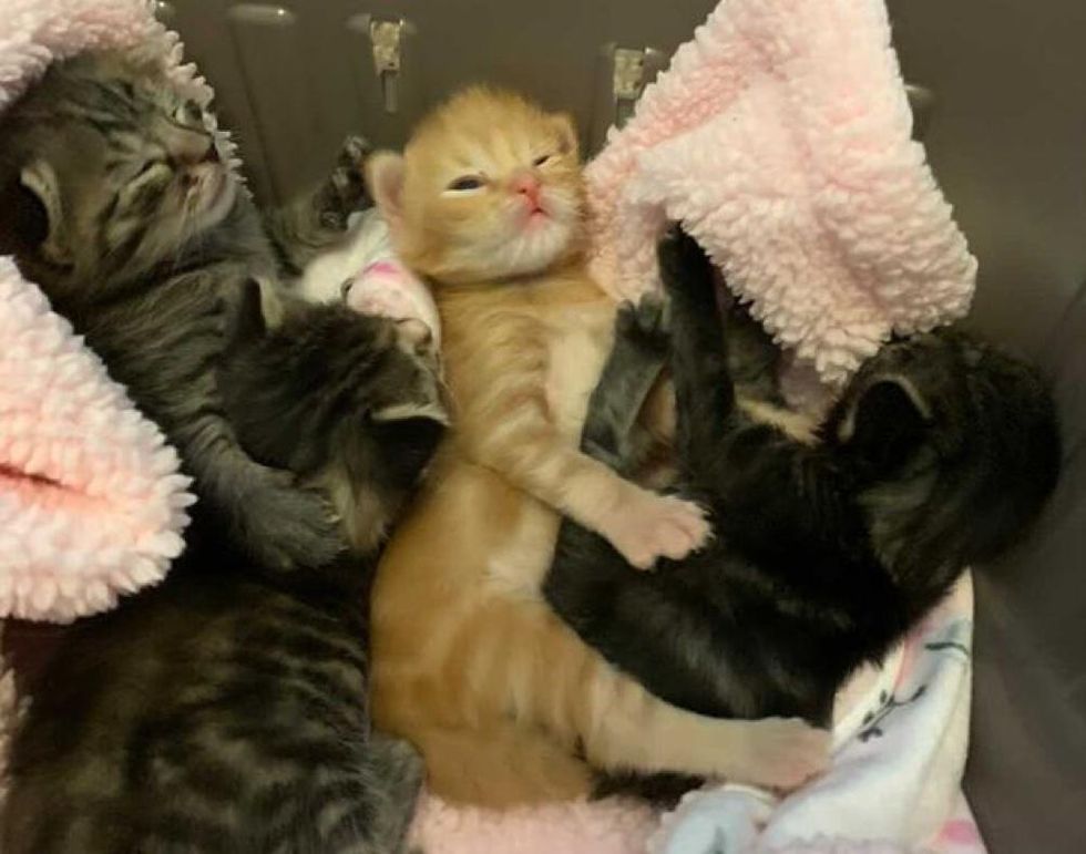 A litter of four kittens was found abandoned outside at just two weeks old. They were brought to Saving One Life and in desperate need of foster care. Caroline Grace, a volunteer of the rescue, stepped up to help.