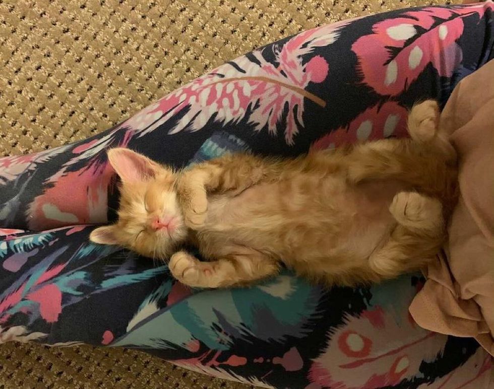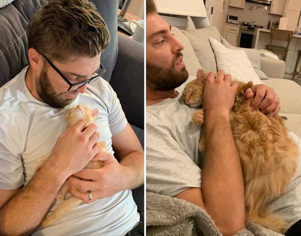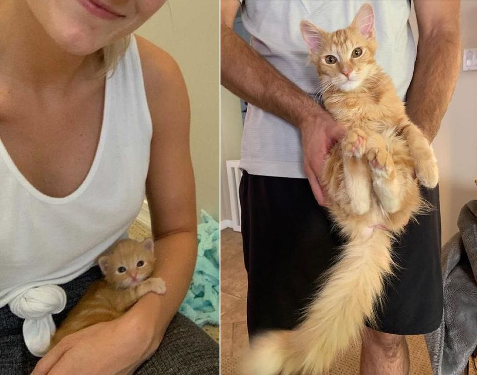 Caroline's husband, Matt, fell head over heels for the little guy and offered himself whenever the kitten needed a cuddle.