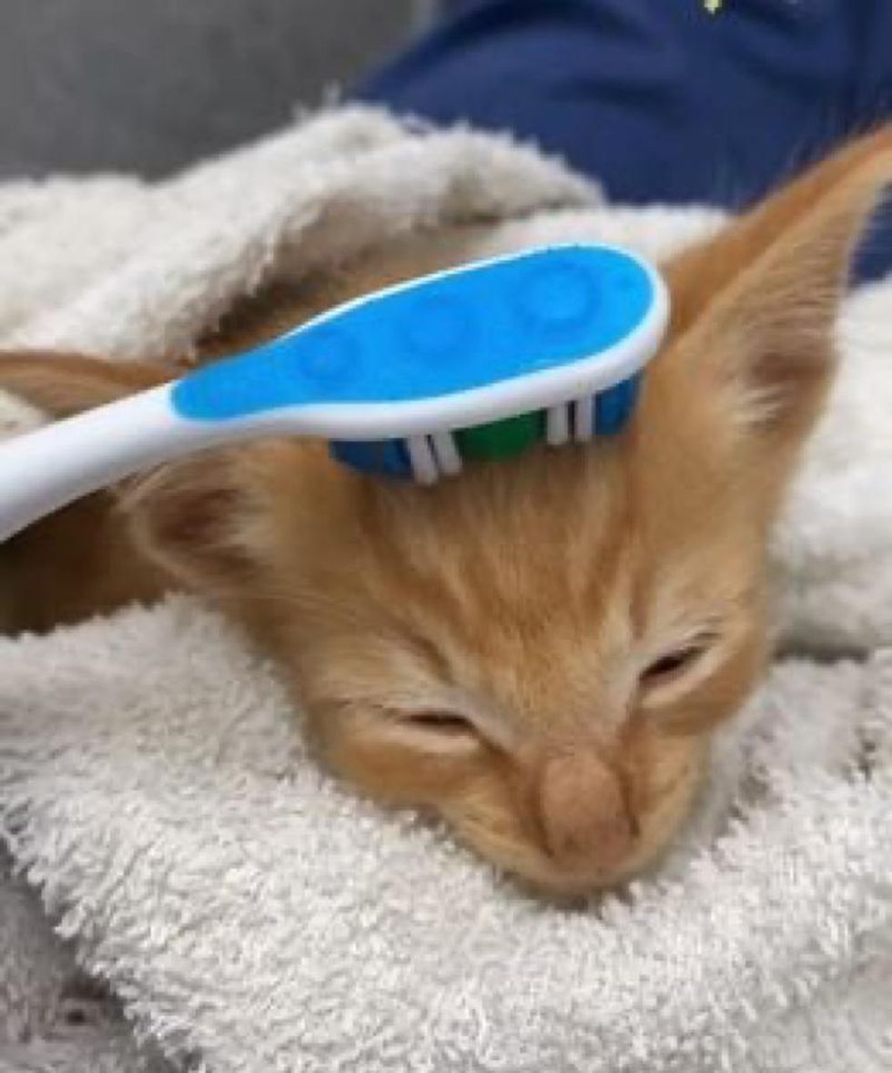 The finder immediately posted a plea on Facebook as they were unable to reach the kitten. A vet nurse who volunteers for Best Friends Felines (a rescue for cats and kittens in Brisbane) saw the post and sprang into action.