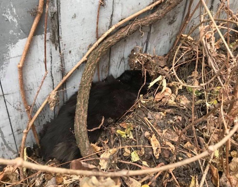 Aurore and Mickael were on their way to Chatons Orphelins Montréal, a cat rescue in Montreal, Canada, when they noticed something moving under a pile of leaves and twigs, on the side of the road.