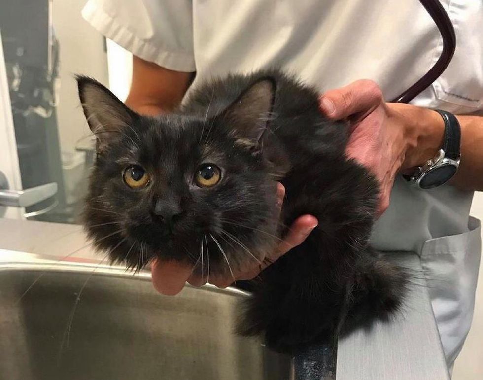 Celine took the kitten straight to the vet, and arranged a foster home where he could be cared for and learn to socialize.