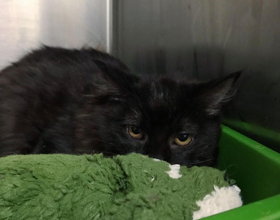 She gently scooped up the kitten who didn't resist or try to escape. "He was so scared that he was shaking like a leaf. He was so small and very skinny."