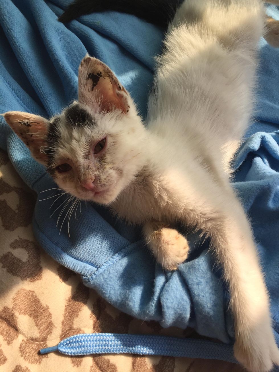 "He fought on daily. I took him to my regular vet farther away and was prescribed ointment for his eyes, meds for his lung infection, and he began getting regular nebulizer treatment. He hated those but still tolerated everything as if he knew it was helping him because you could see him breathing better immediately after treatment."