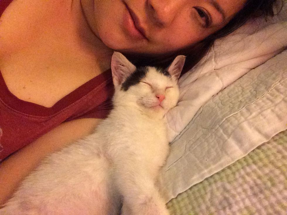 She immediately called her friend to raincheck their plans, picked up the kitten and took him home.