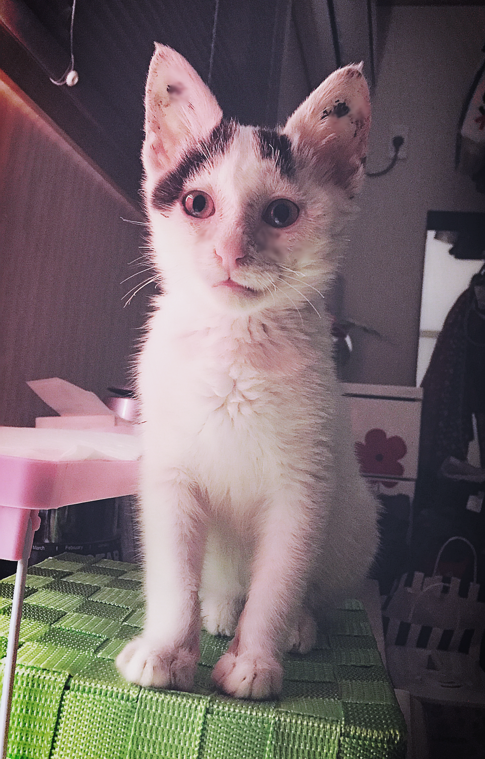 "It was there that this tiny, messed up kitten approached me and let out a silent mew. He just wobbled, seriously wobbled, in my path. I looked down and a lady working nearby gasped because he looked so terrible," HanzoNoKoi told Love Meow.