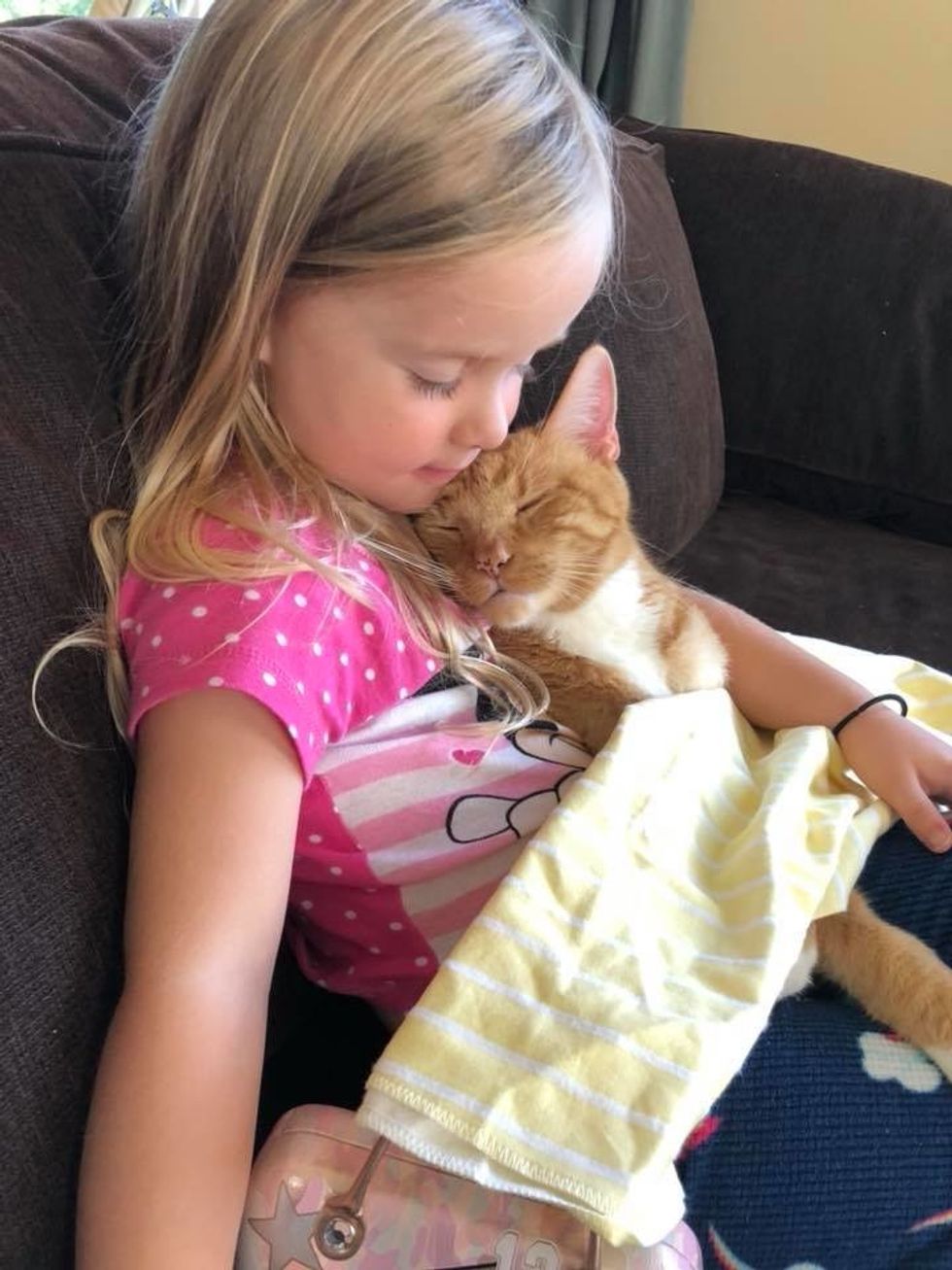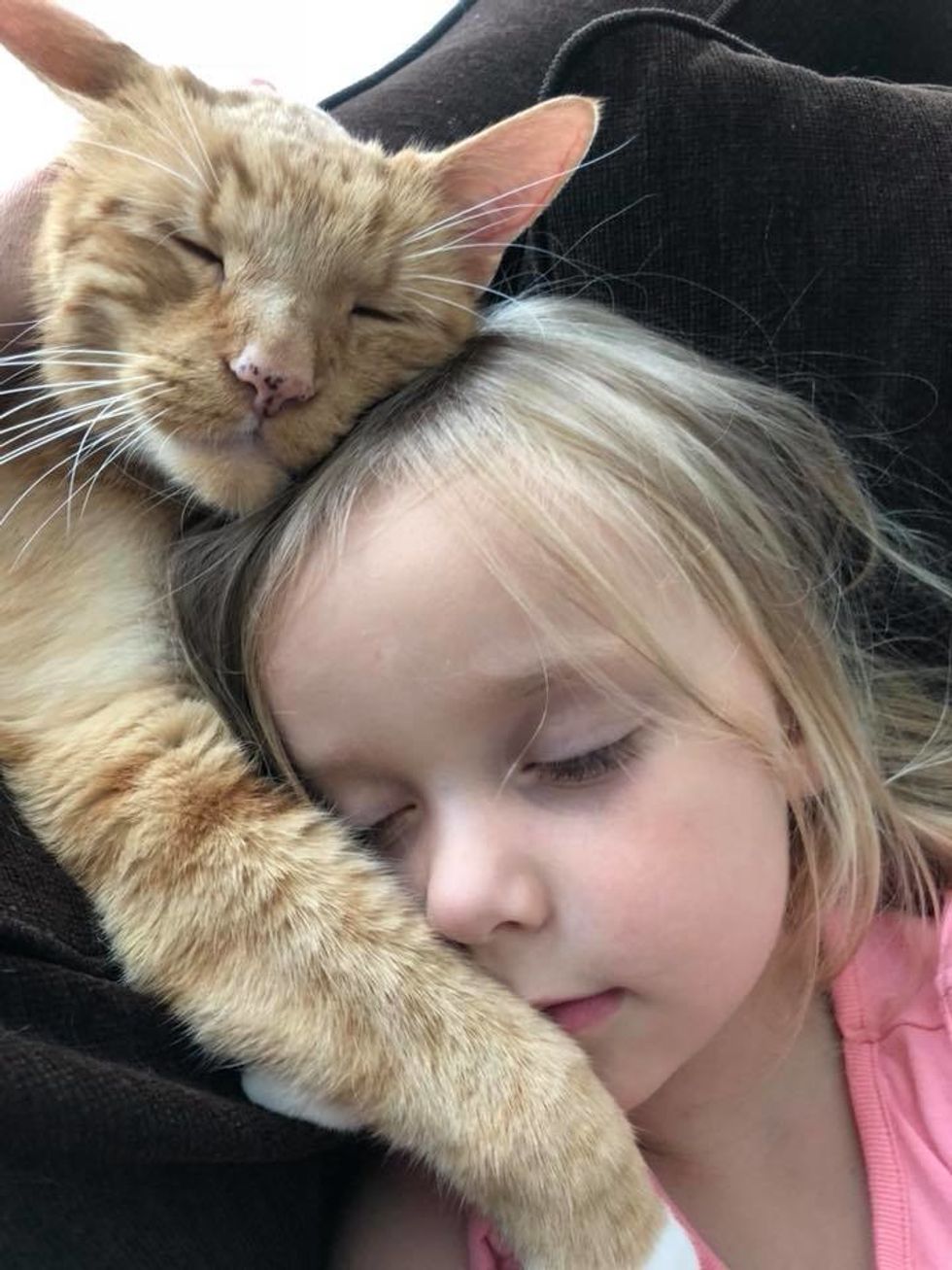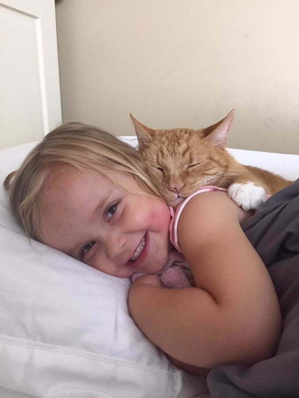 The beautiful ginger cat is 13 years old now. He has been Abby's constant cuddle-buddy since they first met.
