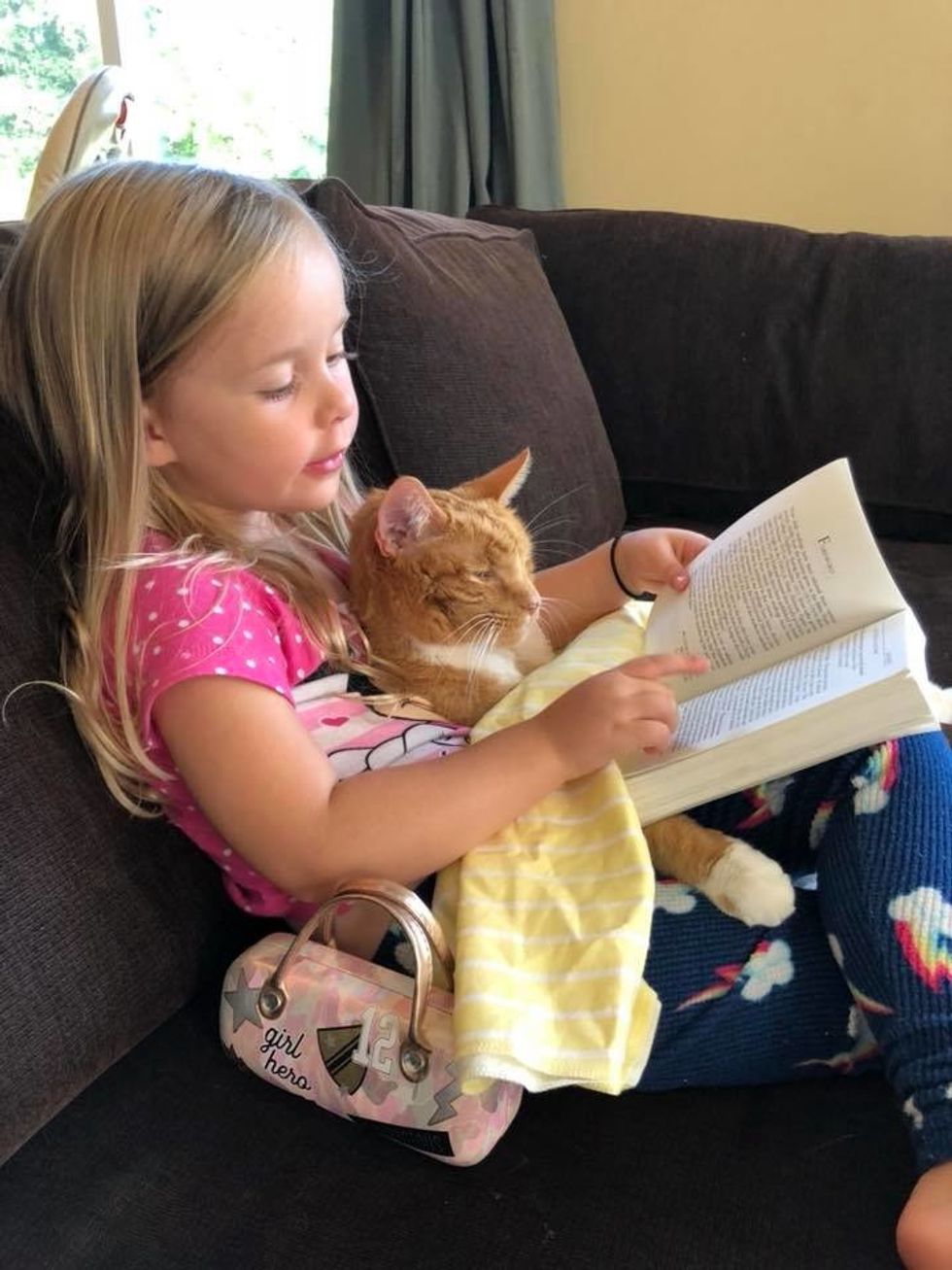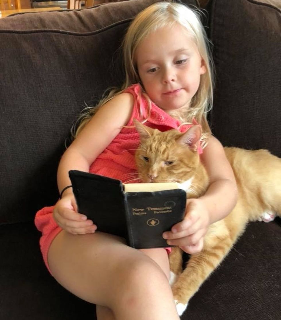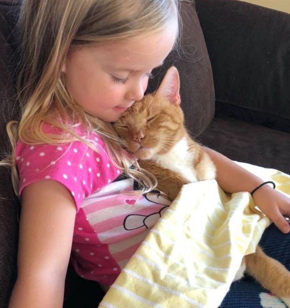 The beautiful ginger cat is 13 years old now. He has been Abby's constant cuddle-buddy since they first met.