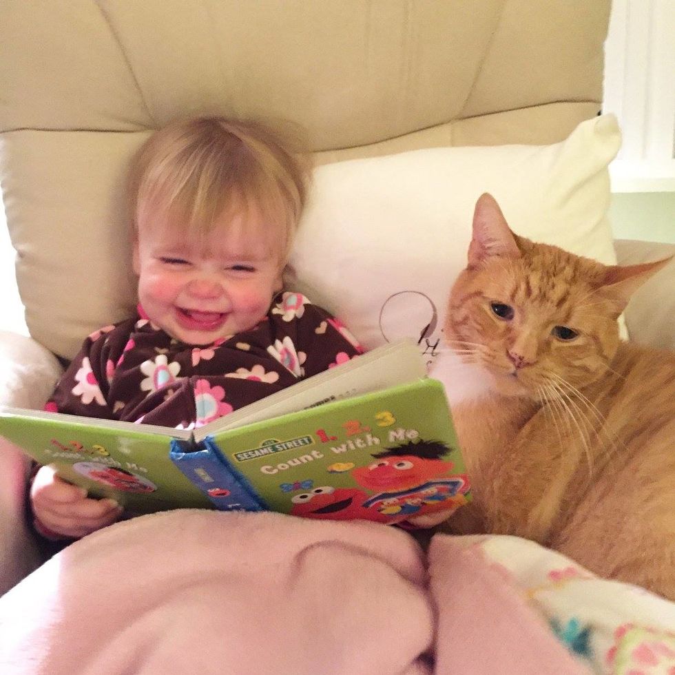 Reading is fun with Bailey purring along!