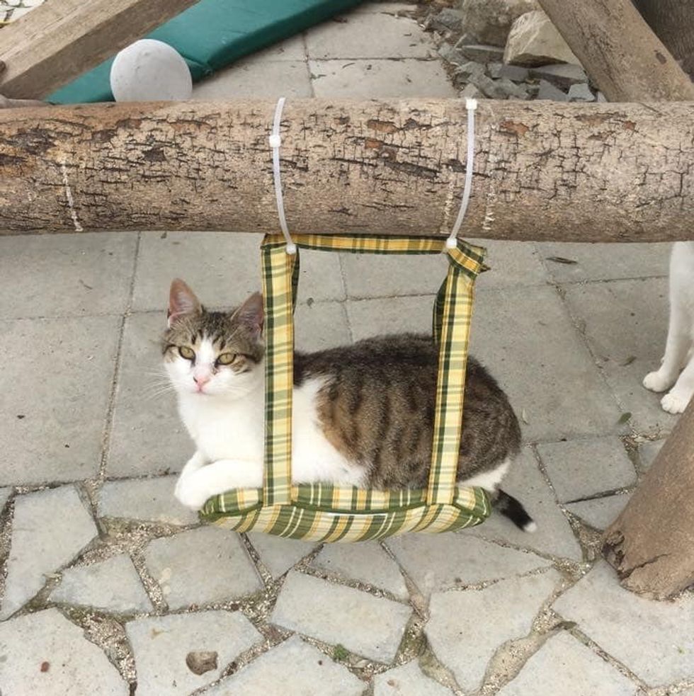 Earlier this year, Jenny from the UK was visiting the sanctuary during her vacation in Cyprus. "The cats all have their pick of comfy beds, water fountains and places to climb — everywhere you look, there are cats chilling out, eating or playing," Jenny told Love Meow.