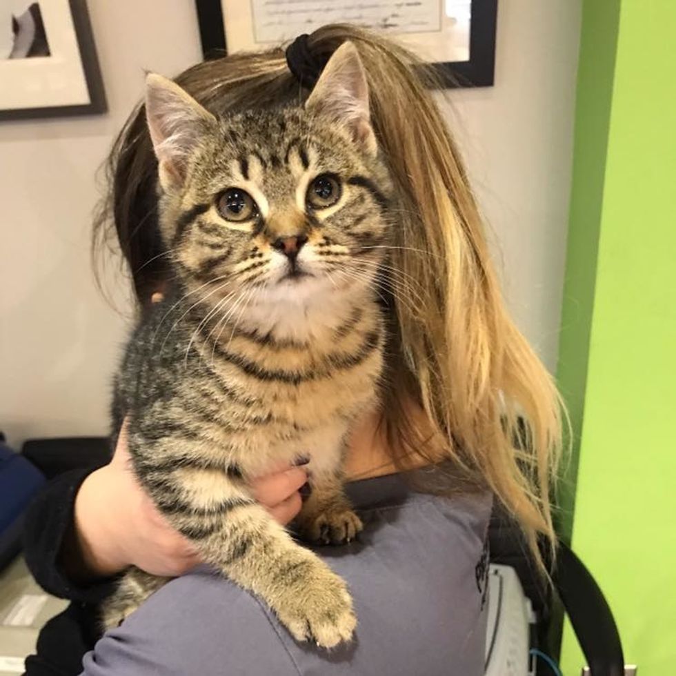 Over the next few weeks, the sweet tabby was nursed back to health. Everyone at the clinic adores her and she's no longer afraid of people and even demands their attention.