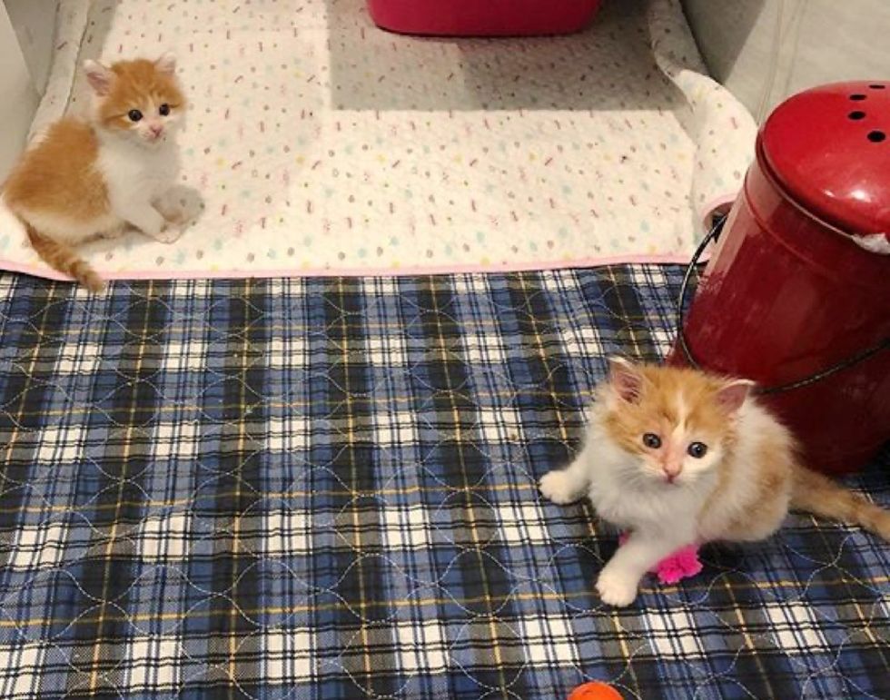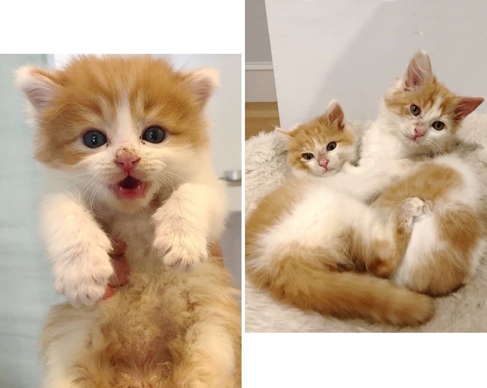 "They came into the shelter at about four weeks old with ringworm," Amber, founder of Saving Grace Rescue, told Love Meow. "That morning, Joyce, a foster volunteer, jokingly asked for ginger kittens and those two popped up."