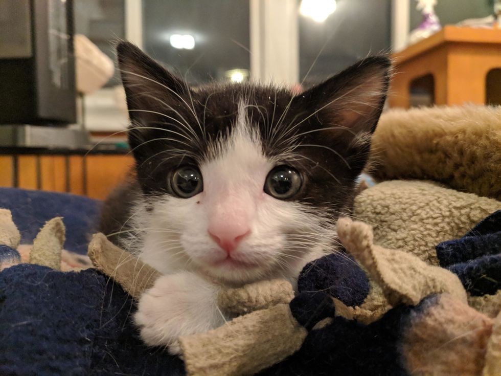 "He loves food, sleeping on the side of your face at night, and jumping on top of kittens. He has a ton of energy, is a total purr machine, and would probably be an MMA fighter if he were human," Christina told Love Meow.