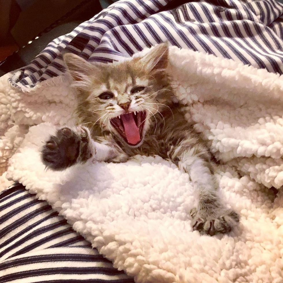 Later that evening, Brandi Hodge of Nashville Cat Rescue informed the couple that the kitten made it out of surgery alive — Winston was tiny but had a mighty spirit.