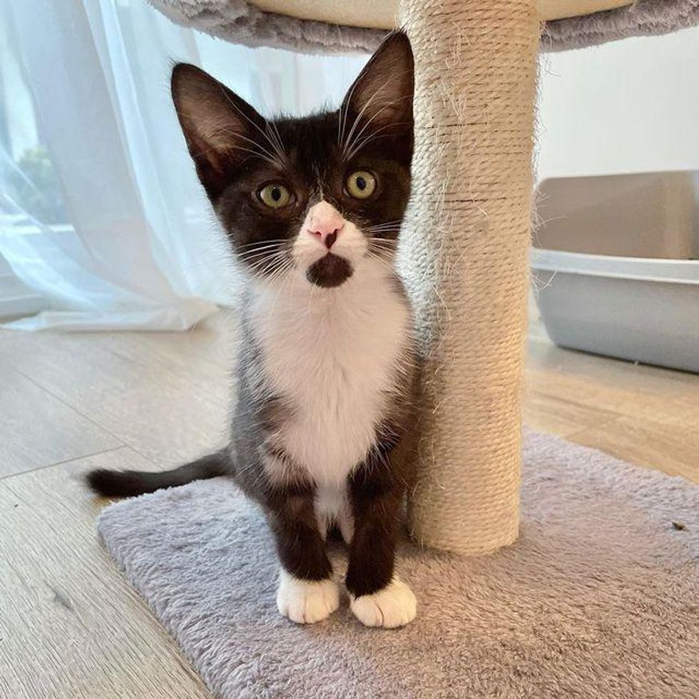 "He is the goofiest, sweetest, most loving boy with the most stunning ghost tabby tuxedo coat. He is such a special boy and will bring his forever family endless love and joy," Caroline shared with Love Meow.