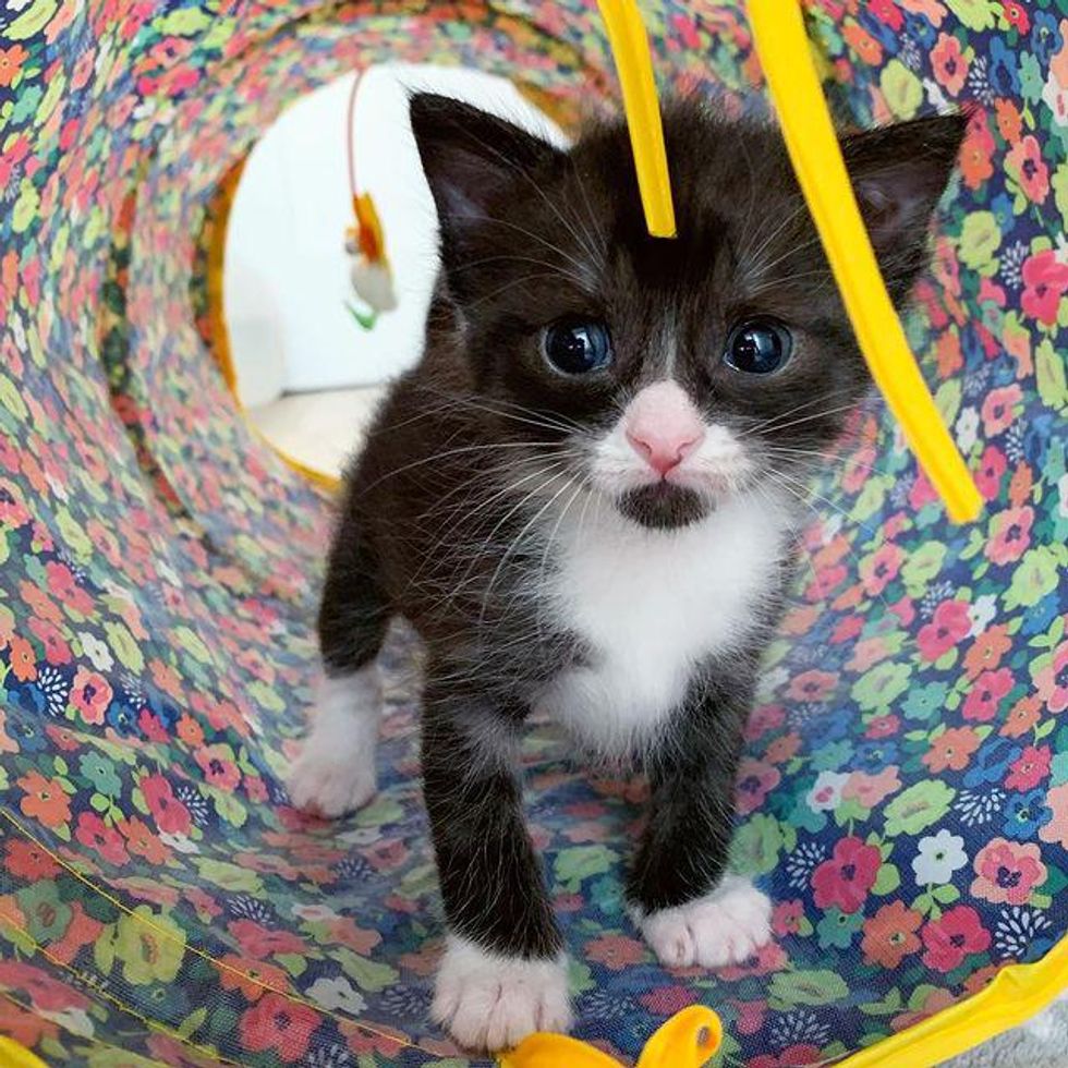 A lone tuxedo kitten was found abandoned outside. With a fighting chance, he began to thrive.