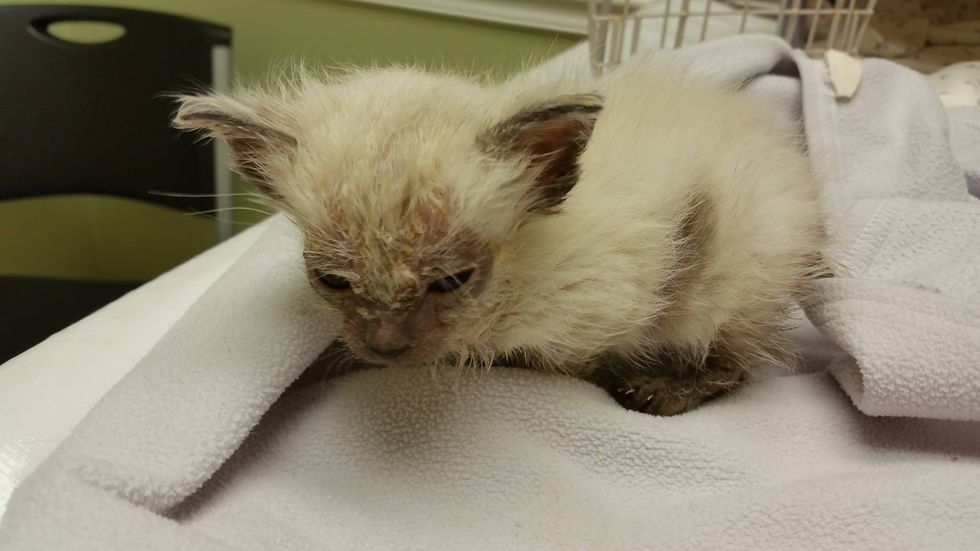 "Gaia arrived in foster as a three week old weighing just 7.6 ounces. The injuries were treated but Gaia almost immediately began failing," Susan told Love Meow.