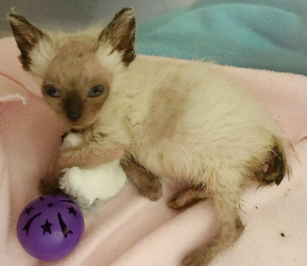 Susan Spaulding, co-founder of National Kitten Coalition (an nonprofit organization in Gainesville VA) took her into her care and was determined to get the little one back on her paws.