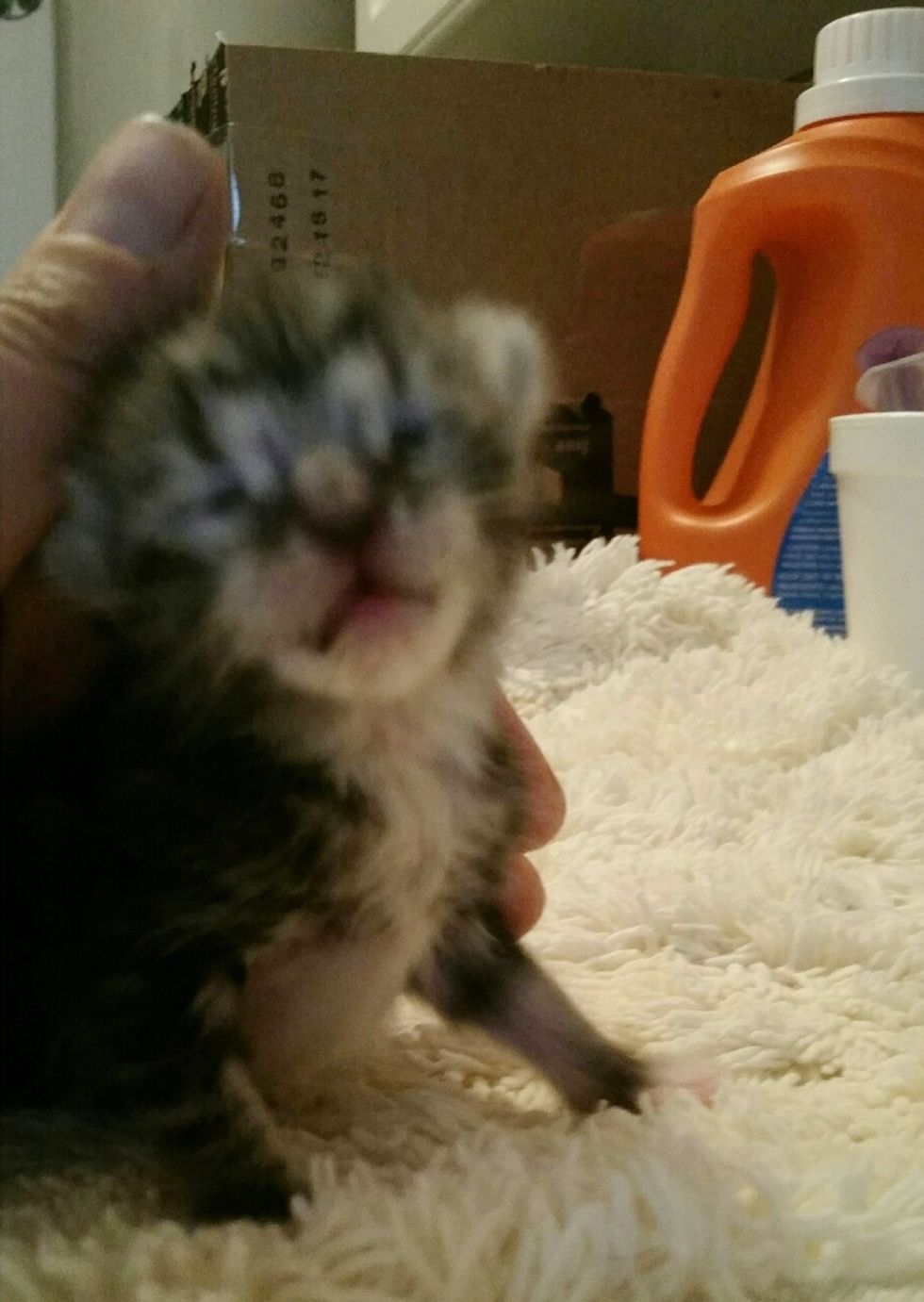 She started feeding him with a syringe every couple of hours and named him Foster.