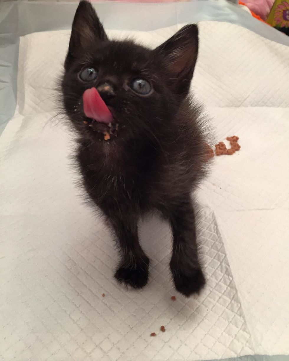 "Little Ashby is eating and playing and sleeping and all the rest that goes along with a happy little kitten," Wendy said.