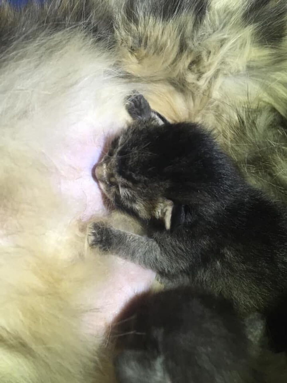 Neonatal kittens like her will have a much higher chance of survival if they can be placed with a nursing mom. The shelter immediately reached out to their foster volunteers, trying to find her a surrogate.