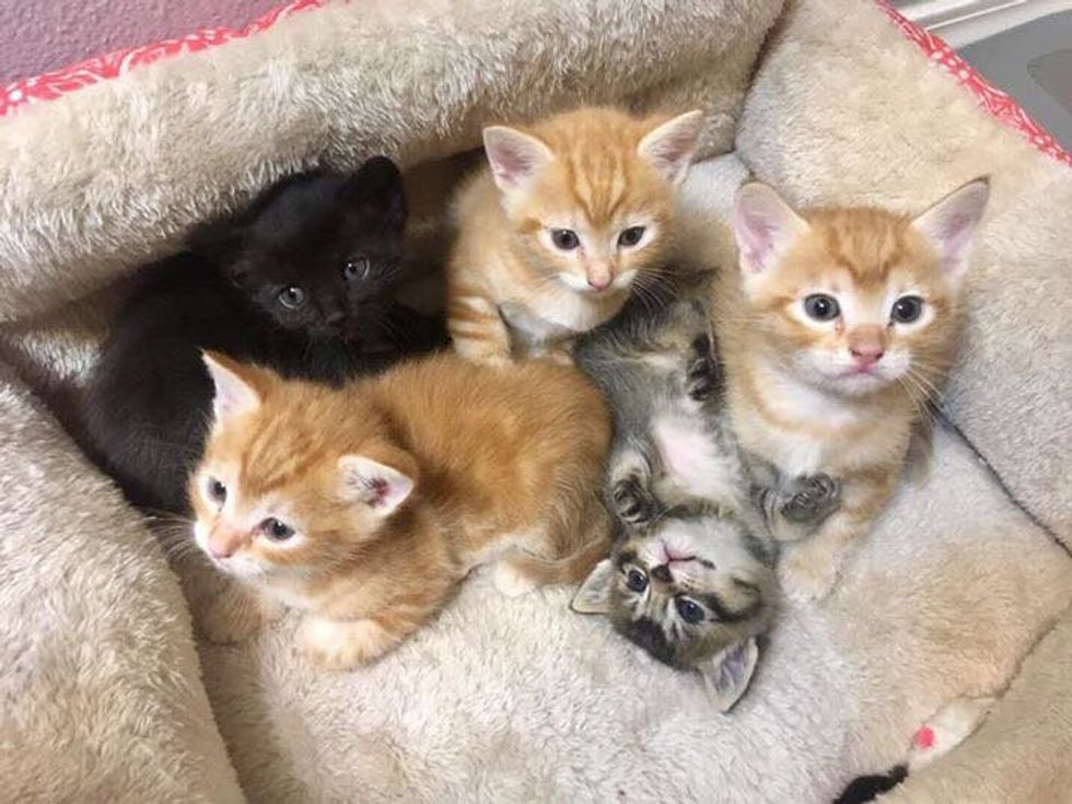 Maddie's own kittens welcomed their new sister with open paws. They started playing and snuggling together like a big family.