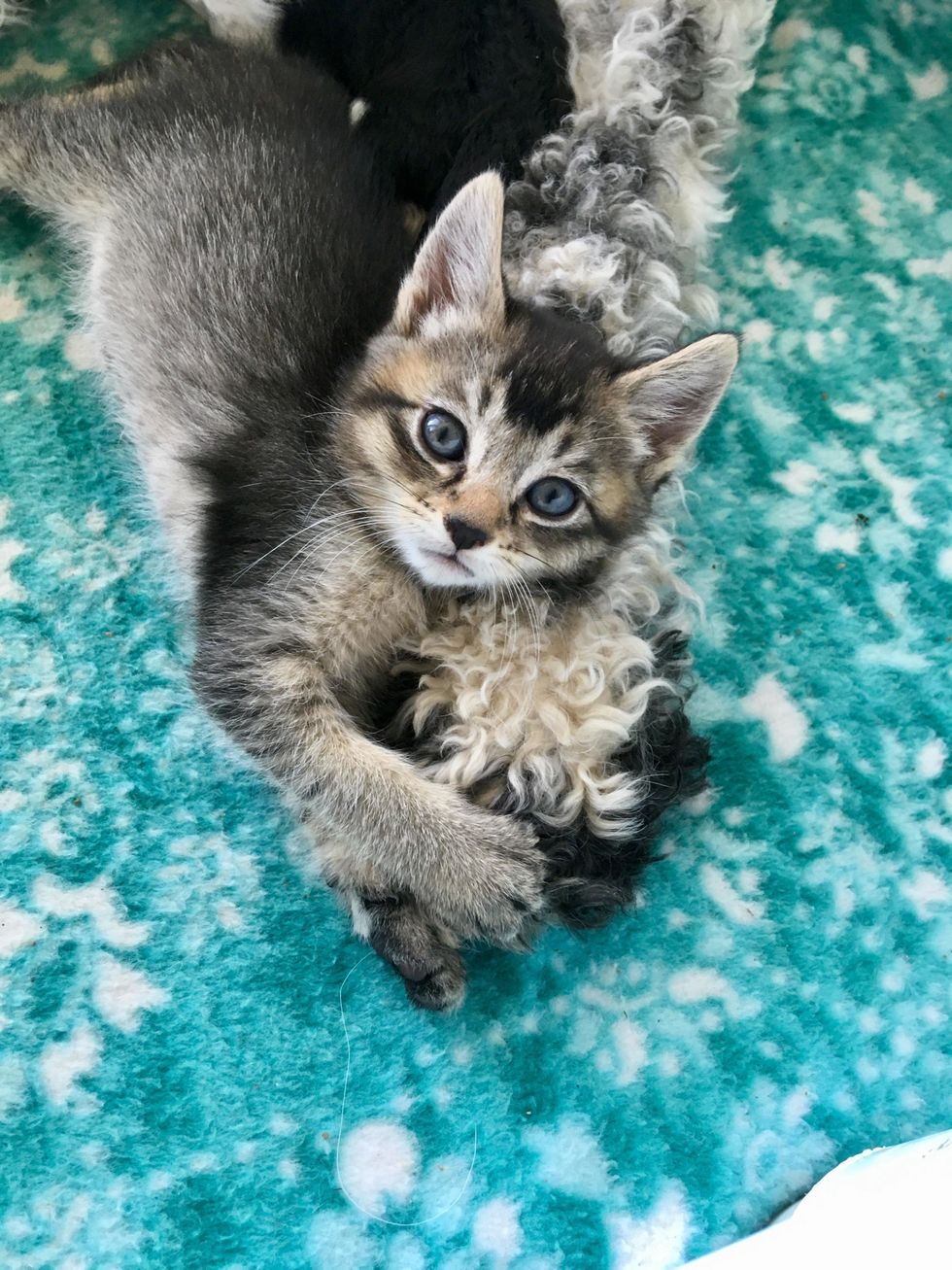 Nala the tabby was found in a dirt alley three months ago when she was a newborn kitten. She was taken in by Spokane County Regional Animal Protection Service (SCRAPS) in Spokane Valley, Washington.