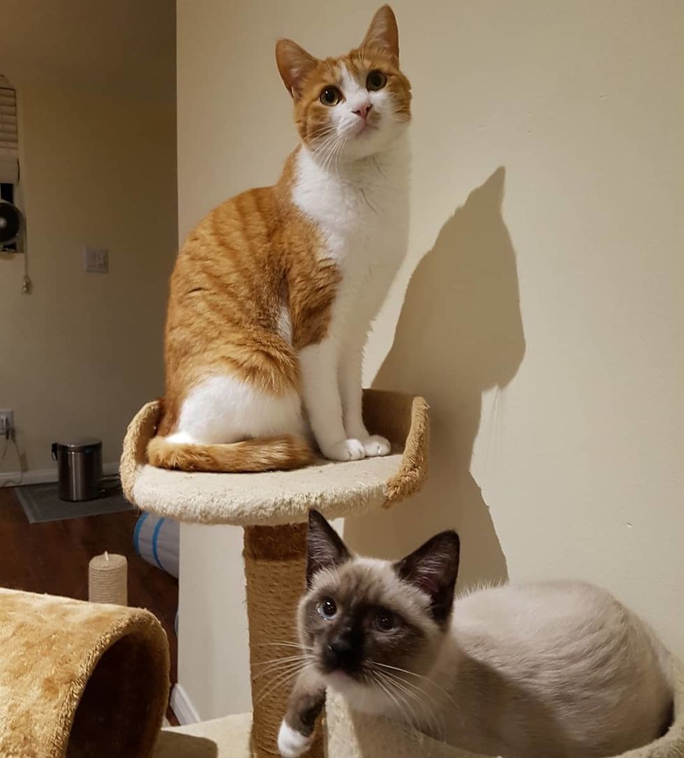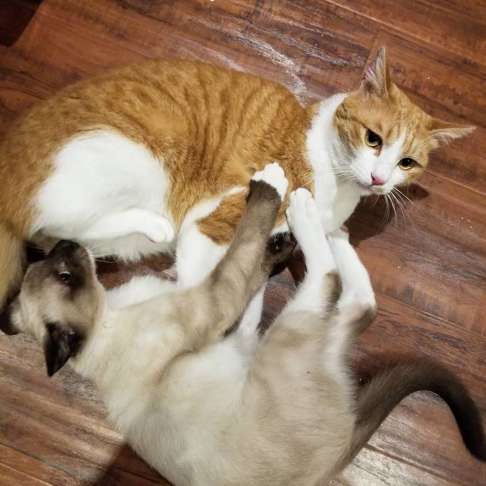 "Eli was really confused at first because from the time he was three weeks old, he was a singleton and didn't have a lot of opportunity to learn how to be a cat," Dana added.