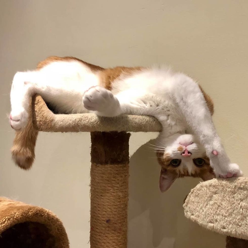 "Eli is extremely vocal and adventurous! He's always climbing on top of things. He loves to curl up in cardboard boxes and to sleep on my stomach," Dana told Love Meow.
