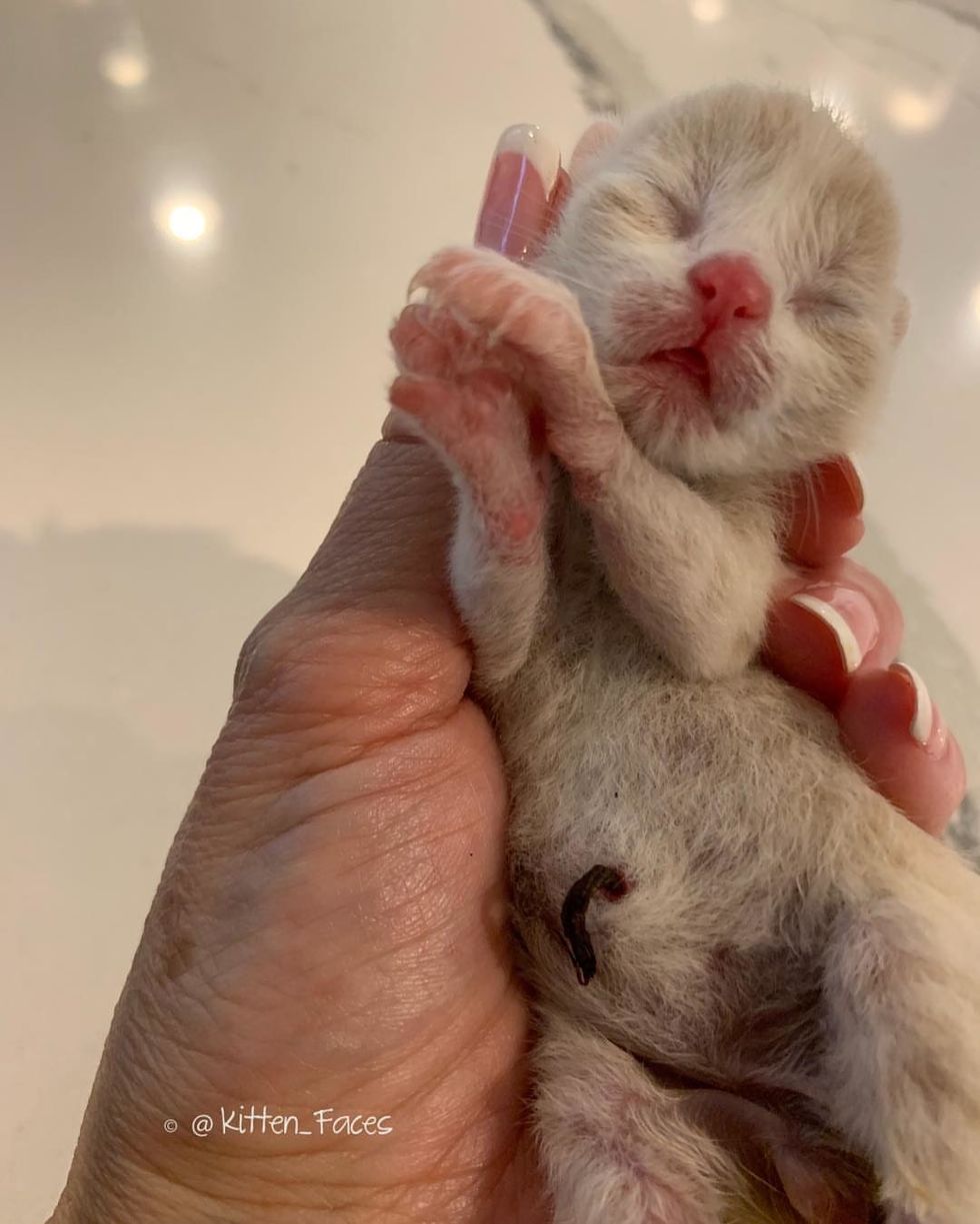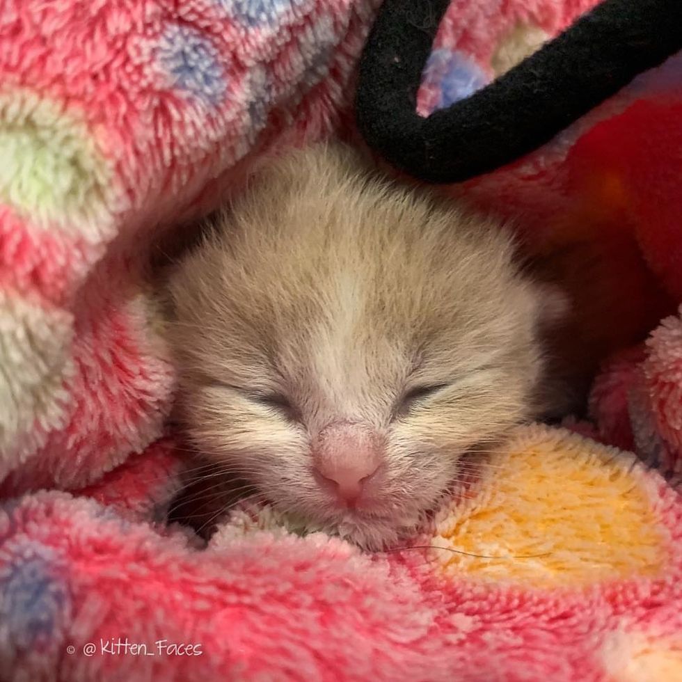 The mighty little fighter bounced back. "He was eating well and purring, and enjoying being cuddled. Tiny kittens are so fragile and things can change so quickly with their health when they're orphans, so each day with Lionel is a gift."