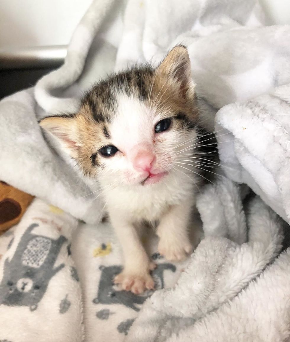 He was very vocal despite being just skin and bones. At three weeks old, he weighed about 170 grams. His body had been very cold before he was found. They brought him back from the brink and kept him in an incubator to help regulate his body temperature.