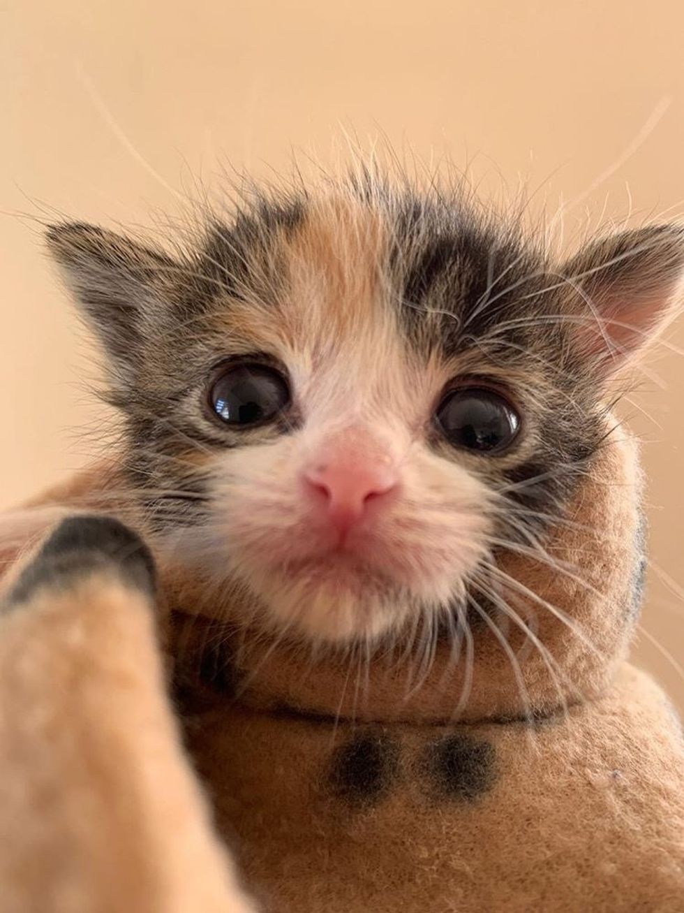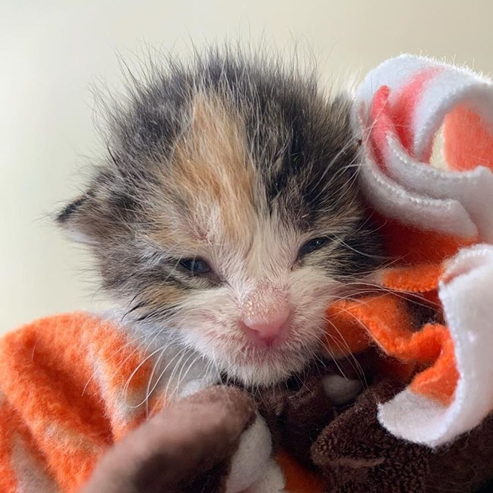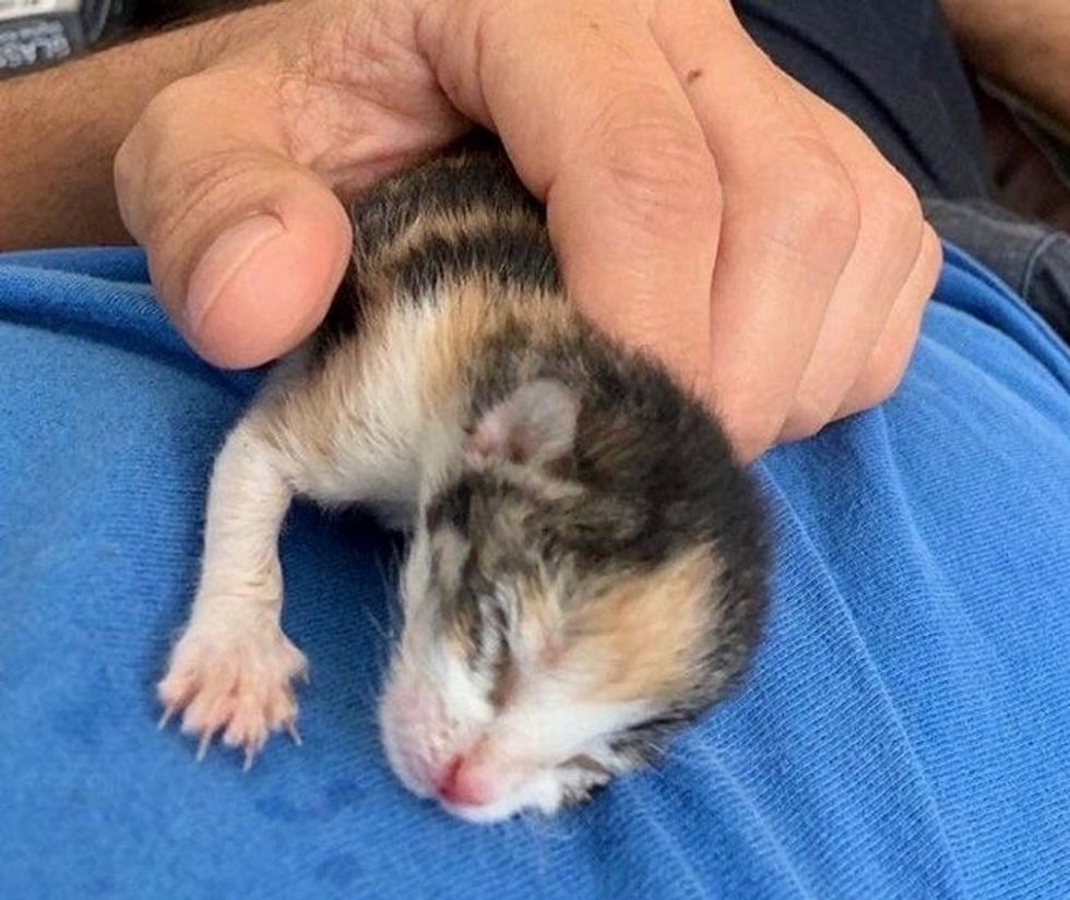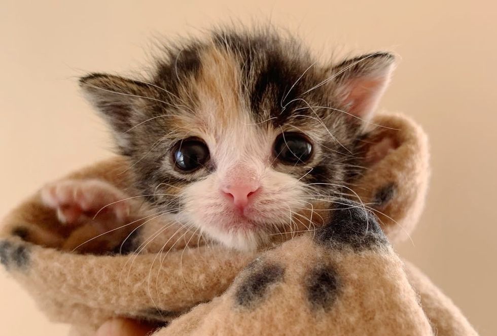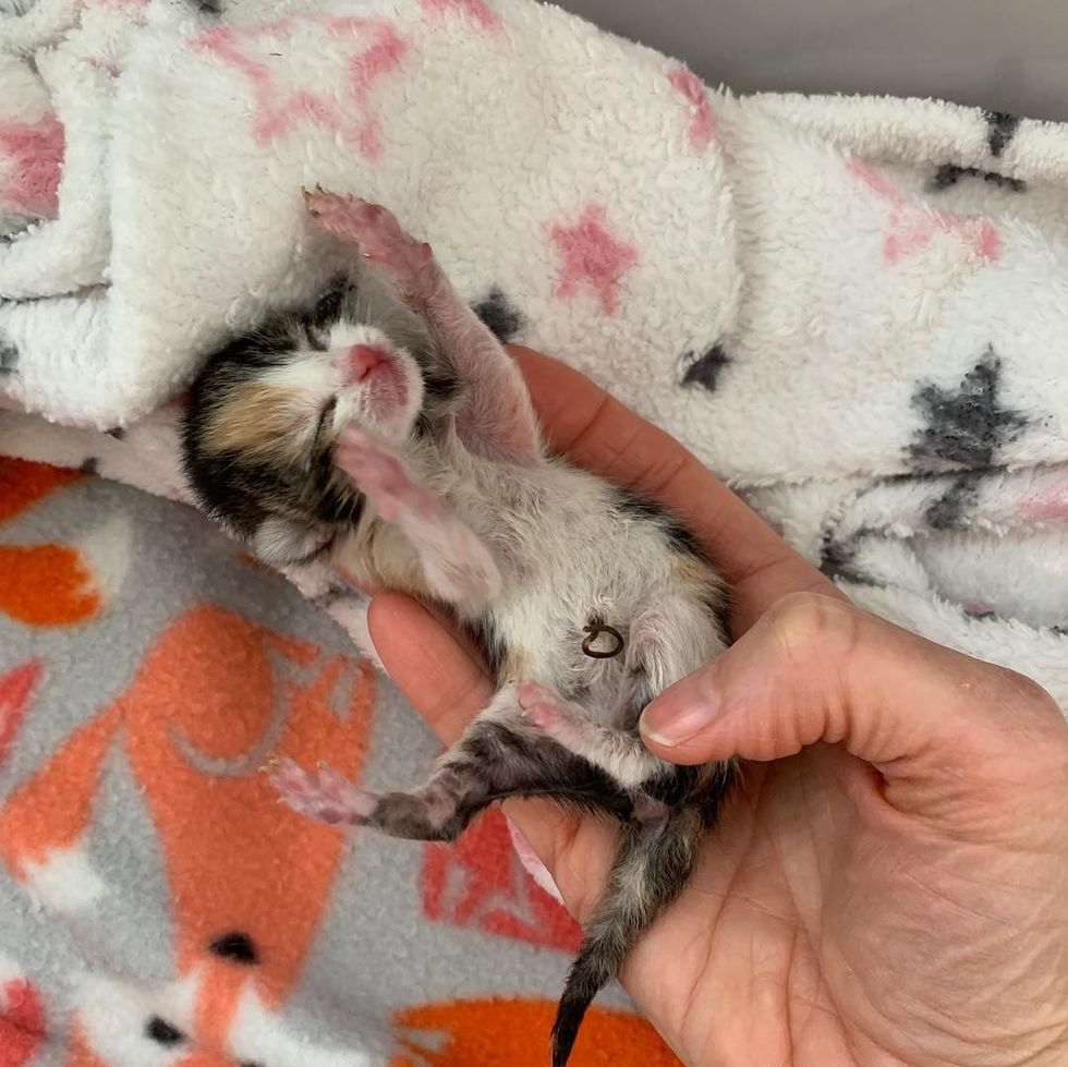 They immediately reached out to Alley Cat Rescue in Los Angeles to get the little one the help she desperately needed. At 2-3 days old, the calico weighed only 76 grams.