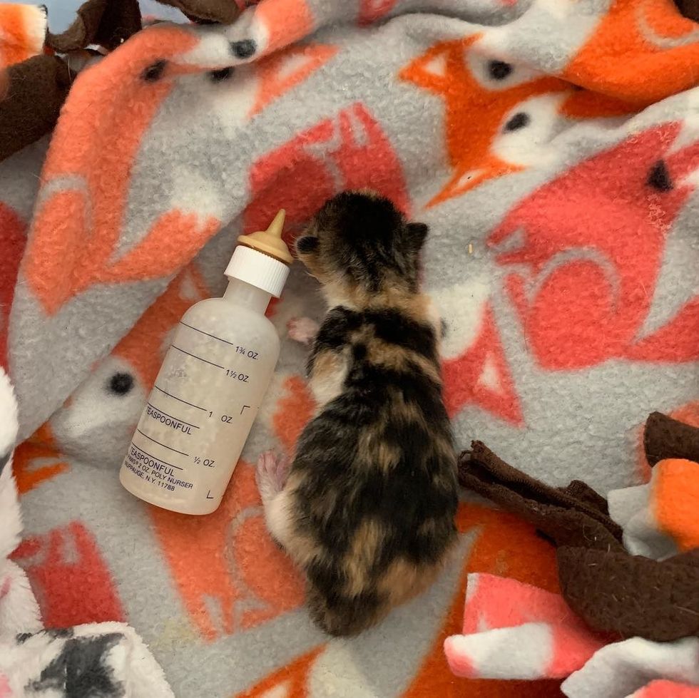 "We added probiotics into her Kitten Milk Replacer. She slept much better. Tiny kittens need around-the-clock care and weighing to ensure they are doing well," Desiree of Alley Cat Rescue shared with Love Meow.
