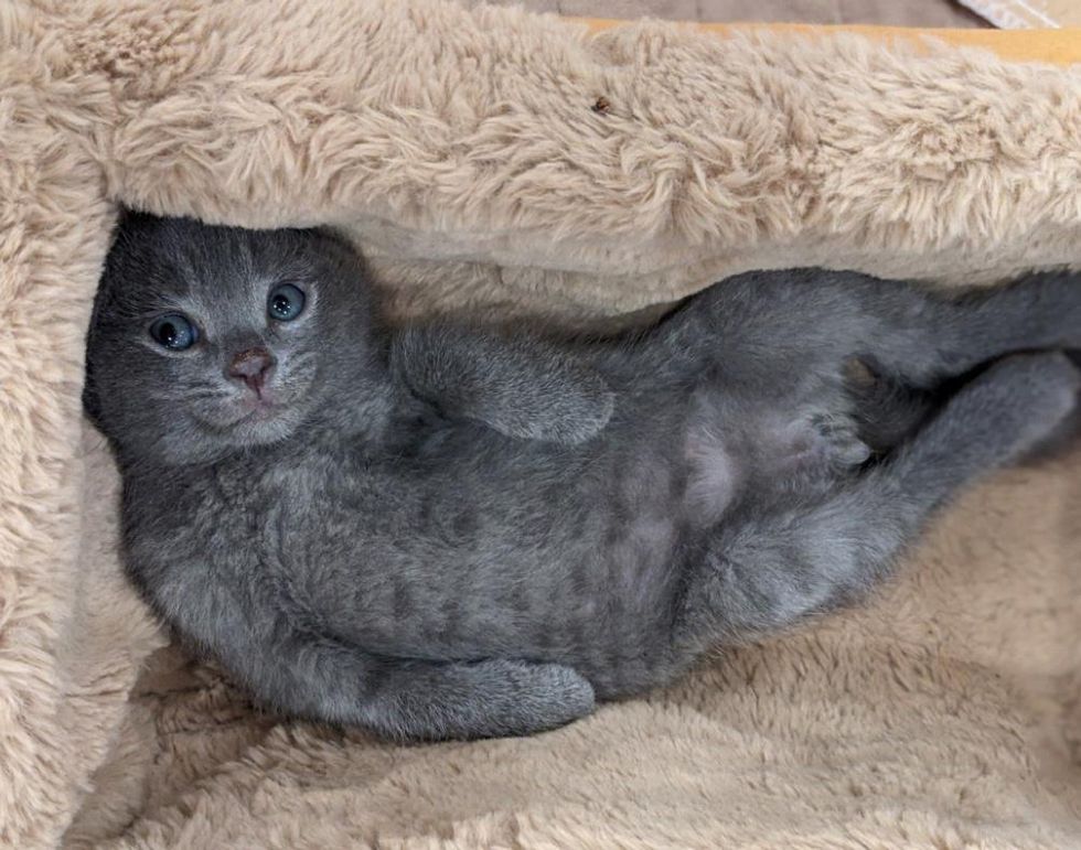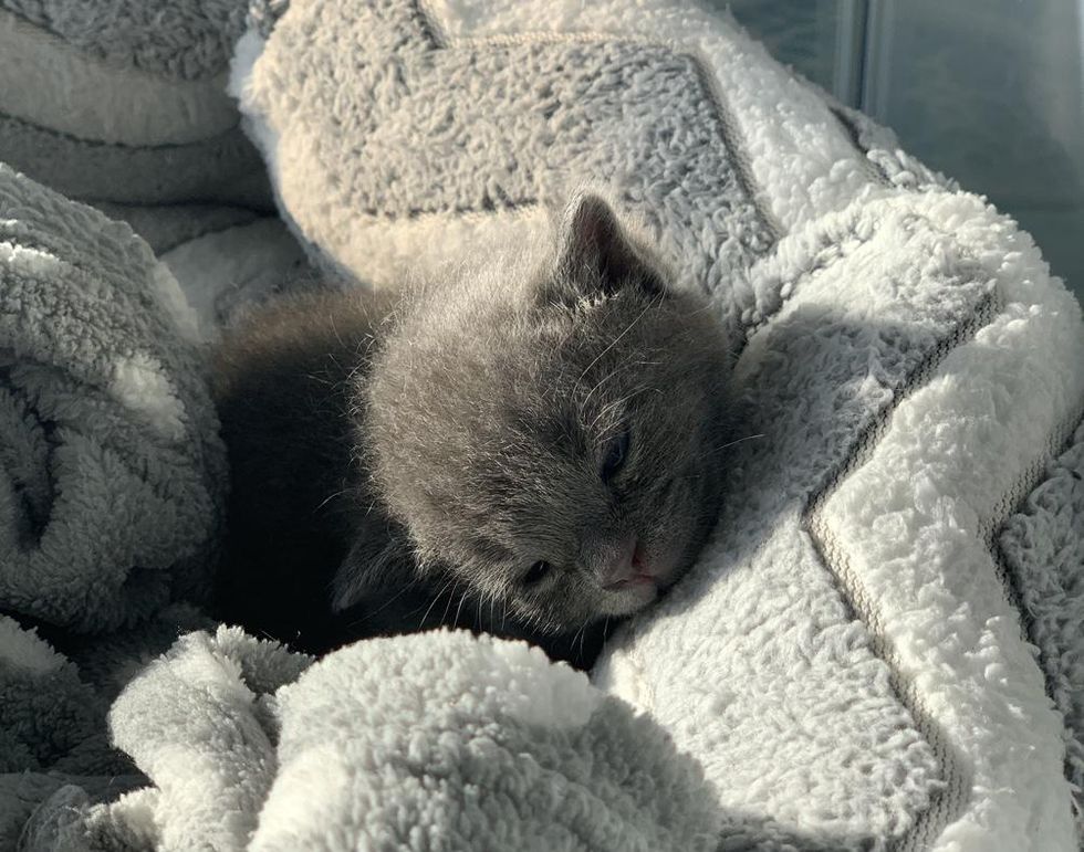 A tiny gray kitten was brought to a shelter in New York City after he was discovered in Brooklyn without a mom. The kitten was in need of a foster home and a buddy to snuggle with.