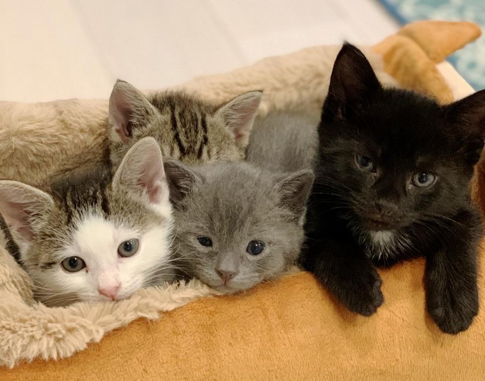 The three older kittens, Eva Ernst, Count Dracula and Dr. Jekyll, quickly accepted the new kitty, Victor Frankenstein (aka Frankie). Soon after they arrived at their foster home, they were playing together as if Frankie had always been part of their crew. The youngest kitten was much smaller in size but tried his hardest to keep up with the others.