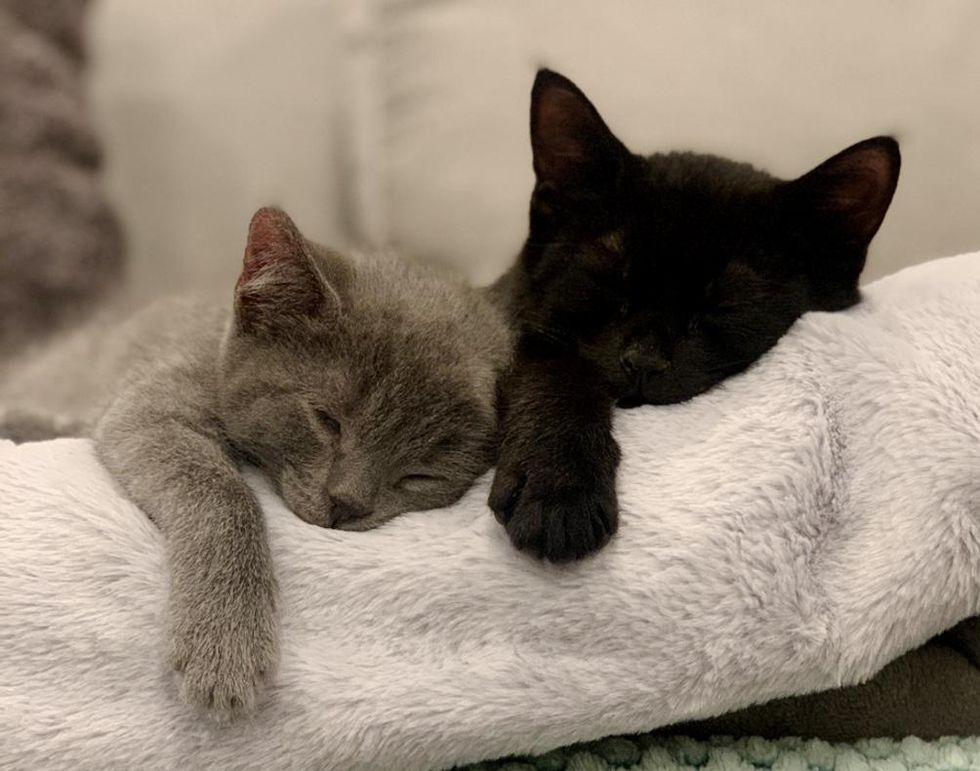 Two kittens were found separately without their moms. They crossed paths at a shelter and became inseparable friends.