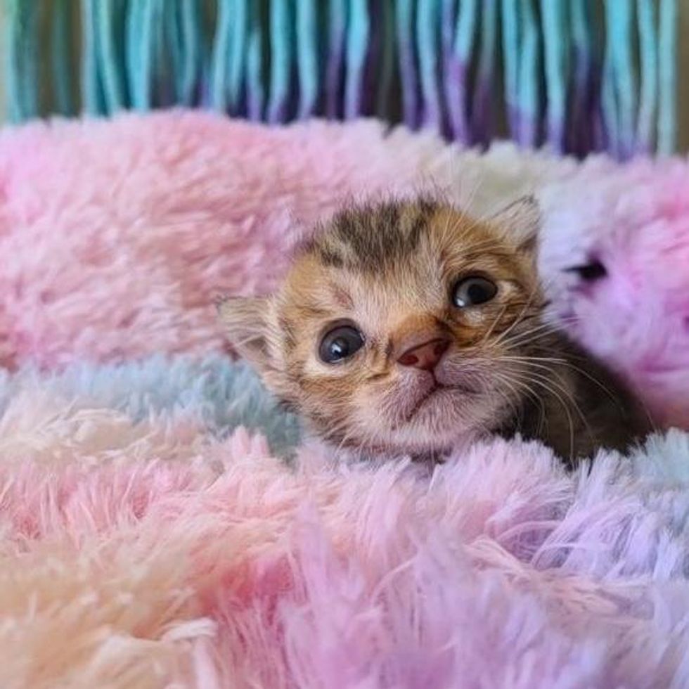 A two-day old kitten was brought to a local shelter in Phoenix, Arizona, in need of help. He was missing a paw as one of his hind legs was found tangled in straw.