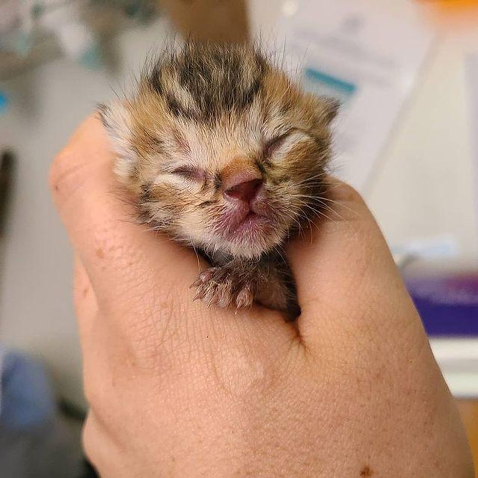The shelter didn't have the resources to keep the kitten, so volunteers sent out a plea for help. "I saw a post on Facebook calling for a rescue to pull the kitten from the shelter," Shelbi Uyehara, founder of Jin's Bottle Babies, told Love Meow.