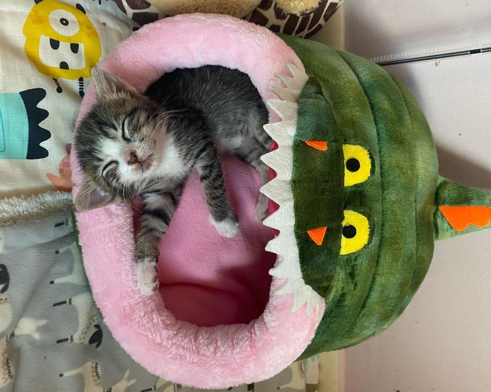 The tabby, lovingly named May, perked up and began to crawl. She immediately gravitated toward her humans for attention and pets. After every feeding, she would roll on her back with contentment and let out the cutest rumbling sound.