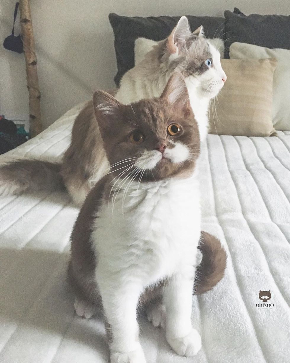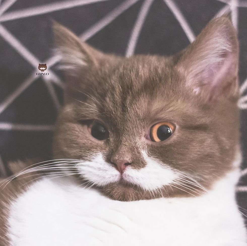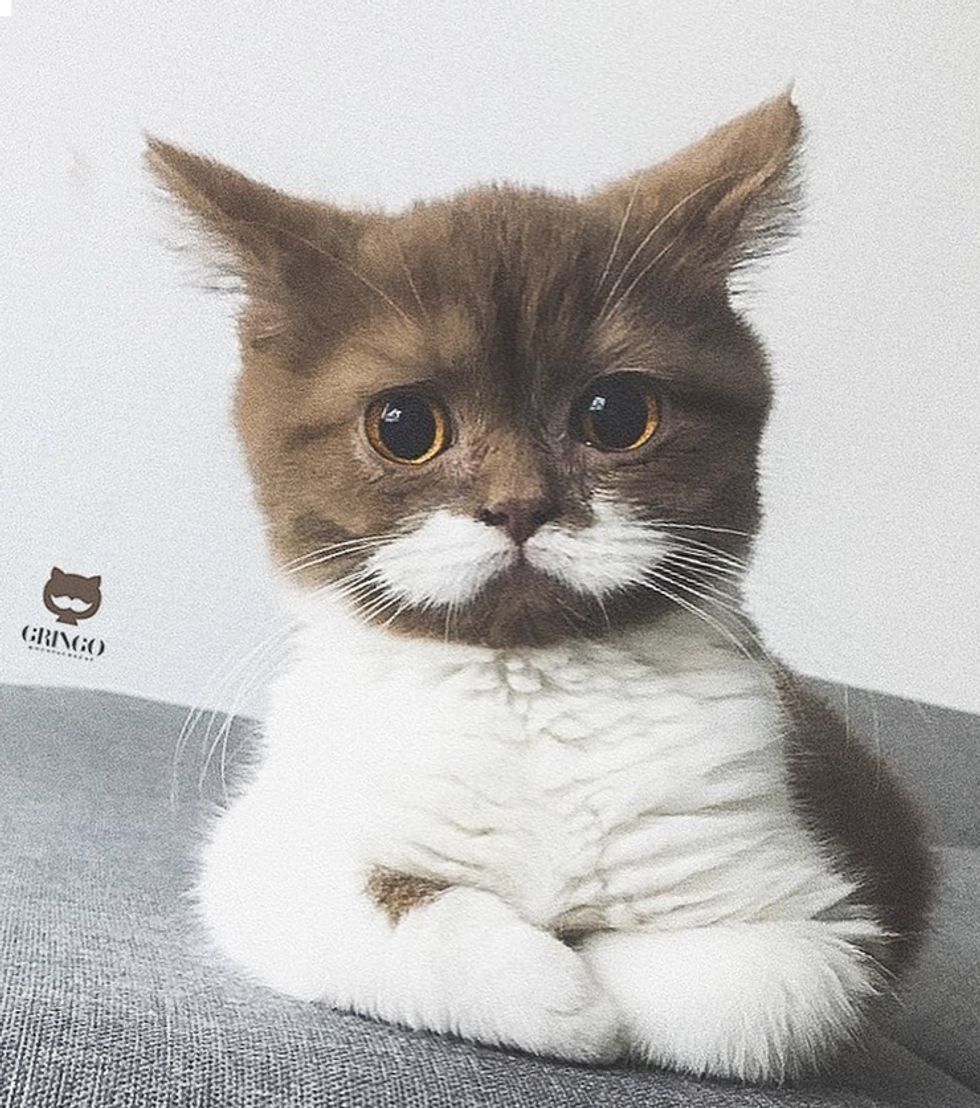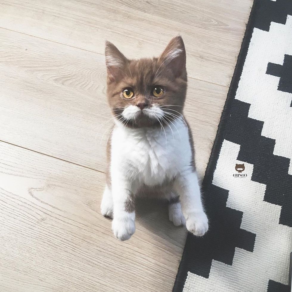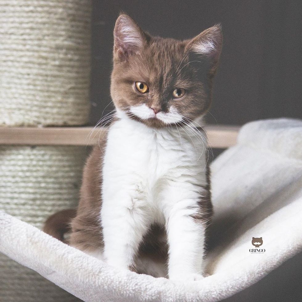 Romain and Sabrine from France met O'gringo the kitten when he was three months old. The little one with the perfect mustache immediately took to them.