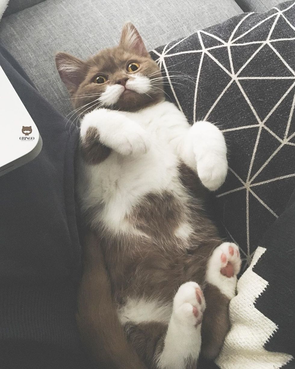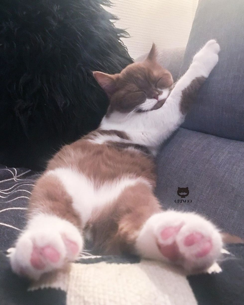 The sweet cat is equipped with a loud purr motor. As soon as he's petted, he switches it on full blast.