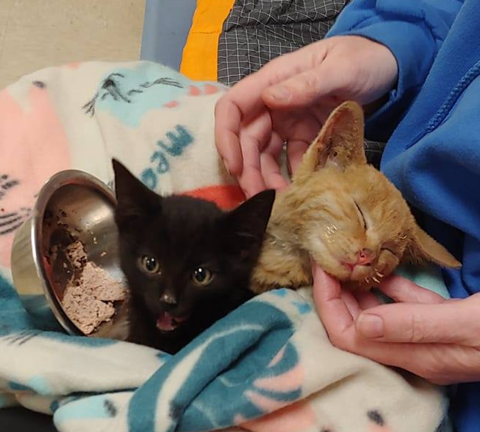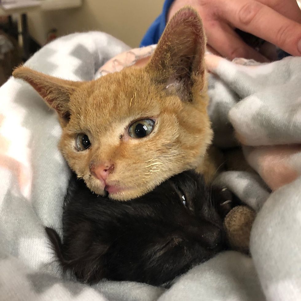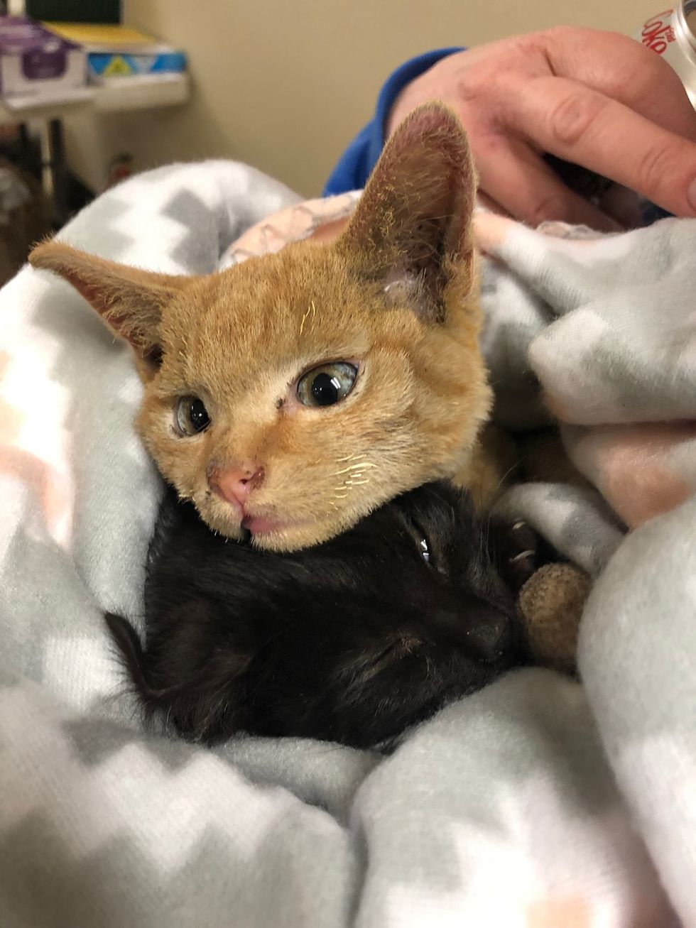 Two kittens were pulled from the disaster area in Concow, California after the devastating wildfire ravaged the town.