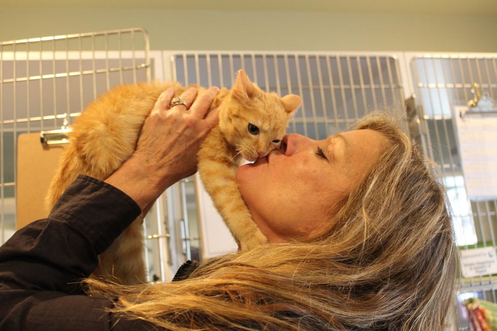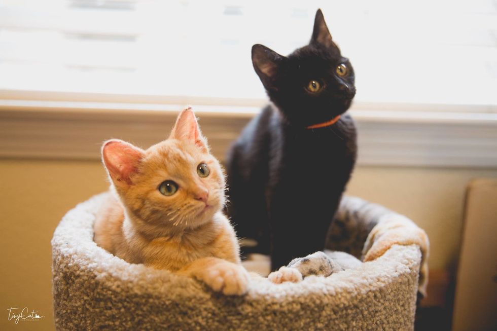 Staff named the kittens Ash (black) and Phoenix (orange). Ash is the smaller one of the two and Phoenix is a little protector.