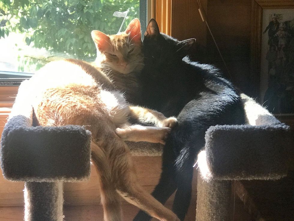 The two kittens are on the mend. Phoenix hovers over his little brother, making sure he's safe and loved. They are like two peas in a pod, completely inseparable.