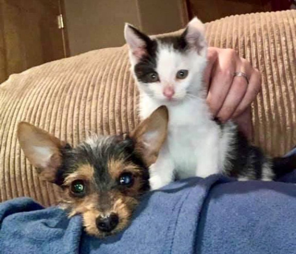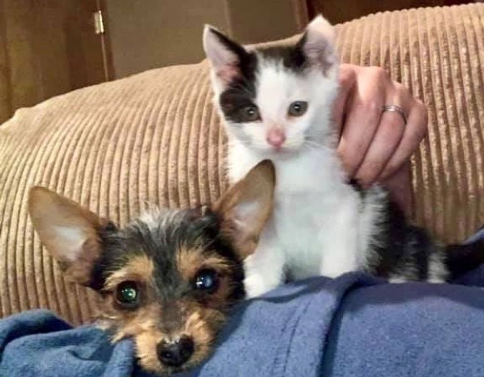 The Spokane County Regional Animal Protection Service (SCRAPS) took in a pair of bonded strays rescued from the streets in Spokane, Washington. A couple found the kitten and his canine friend together and brought them in for help.